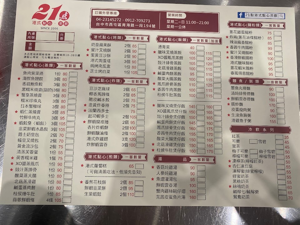2024最新在地推薦餐廳的菜單_二十一点港式餐飲的菜單、圖片