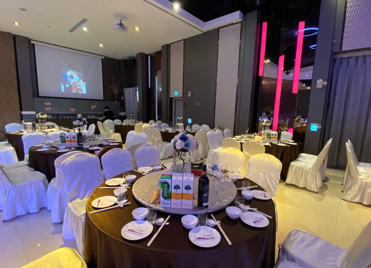 電視牆螢幕超大解析超漂亮,音響很棒!張副總和呂副總接待服務很貼心!場地不大,如超過40桌就坐不下。