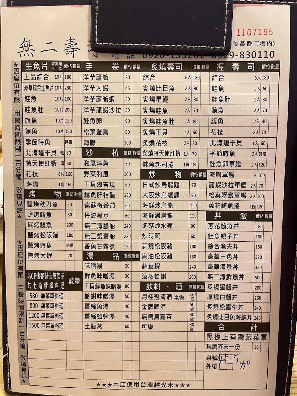 2024最新在地推薦餐廳的菜單_無二壽司總店的菜單、圖片