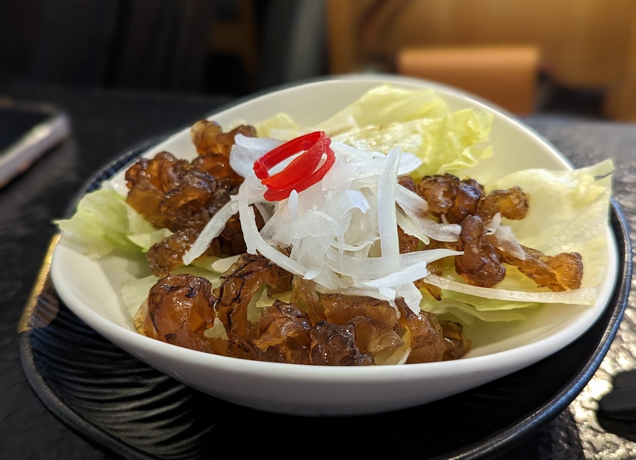 餐點內容沒有太大的驚豔,菜口就在座位的正前方,服務員忙進忙出,增加了一點壓迫感,食物容器都有點老舊,土瓶蒸的杯子還缺了一角,滿心期待卻有點小失望…