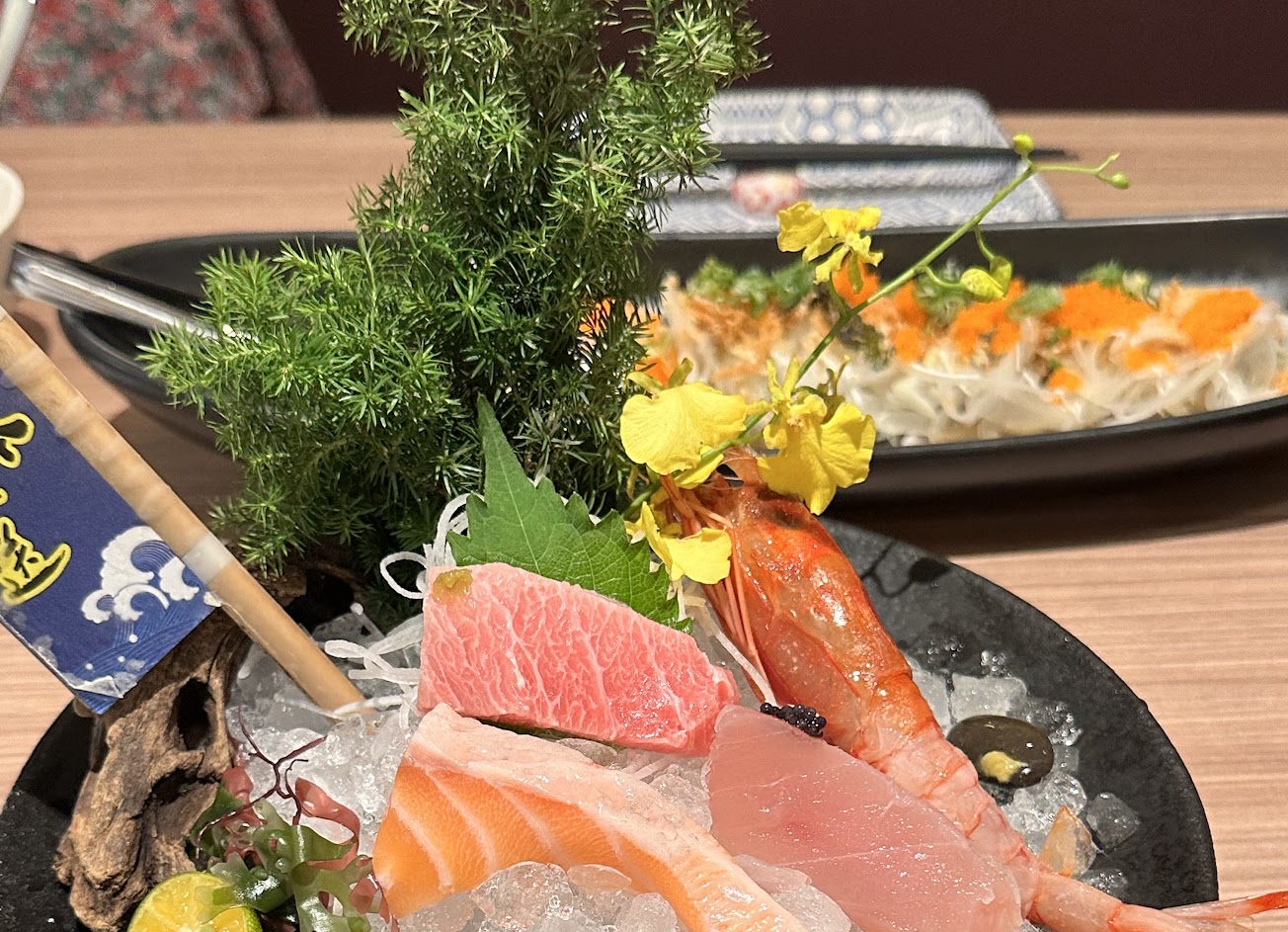 刺身盛合, 涼拌魚皮沙拉, 鮮魚一夜干, a5和牛