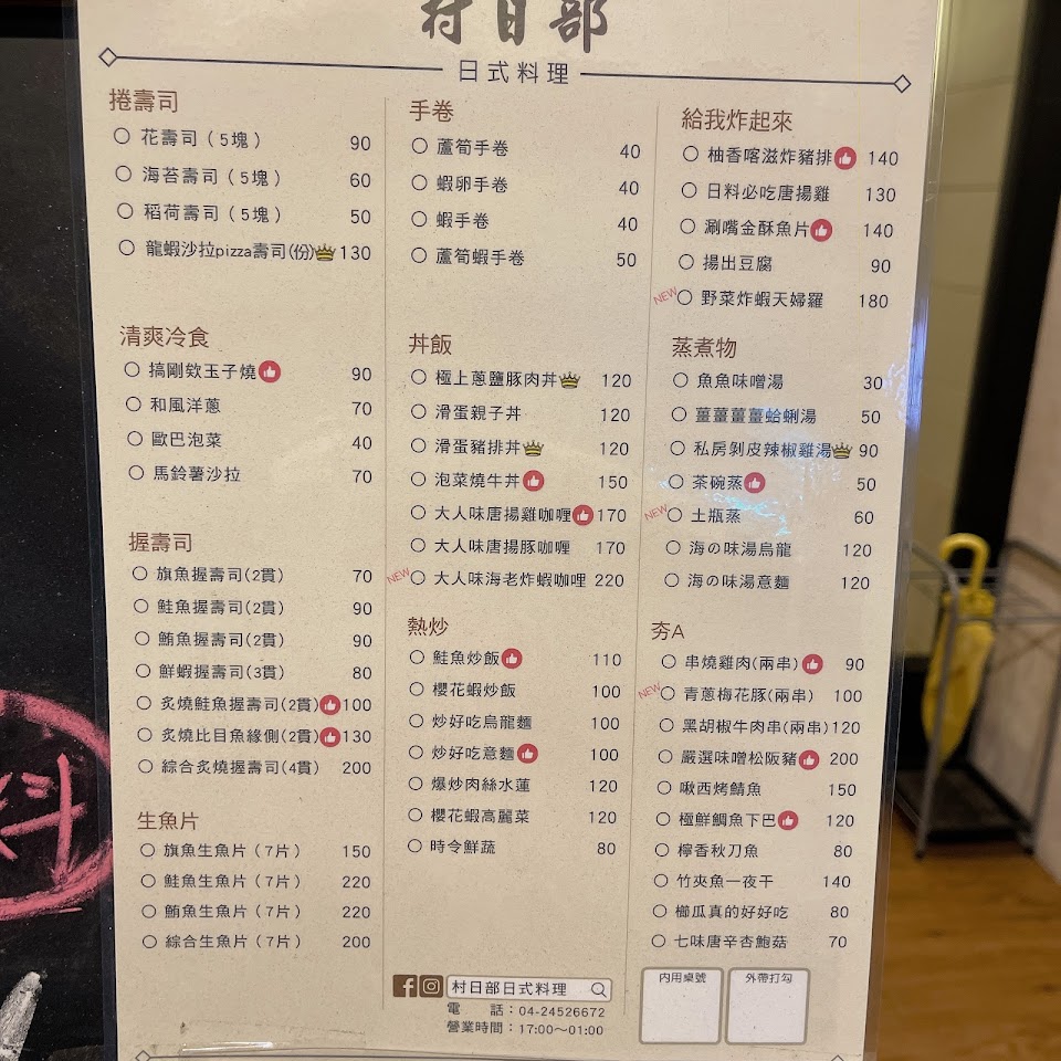 2024最新在地推薦餐廳的菜單_「村日部」日式料理-逢甲深夜食堂 高cp值料理推薦|丼飯|壽司|燒烤|揚物|的菜單、圖片