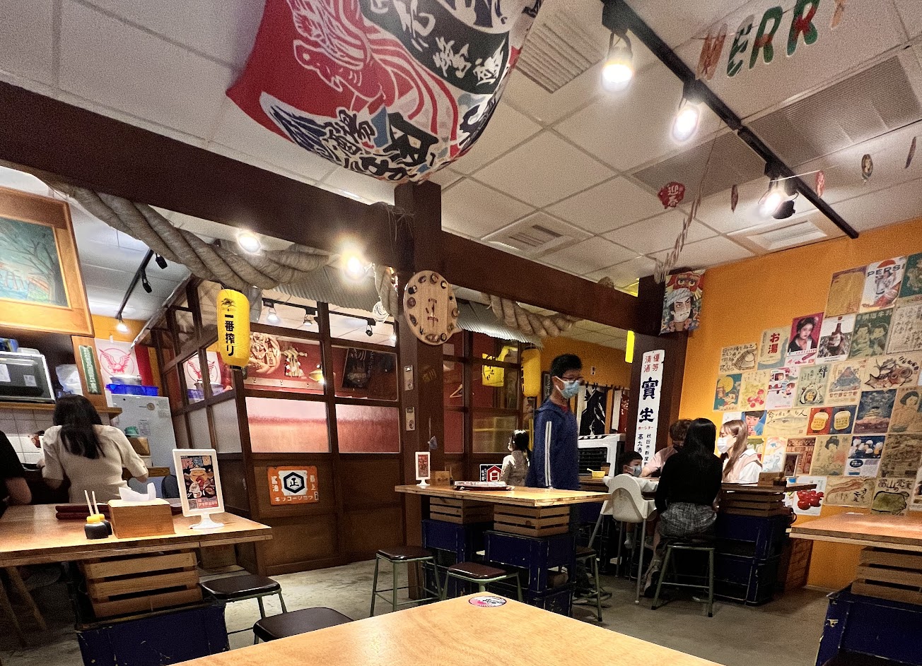 這家店的風格很日式居酒屋,平日中午來的人潮也算挺多的,不過 座位還算夠多,不至於有擁擠的感覺。
