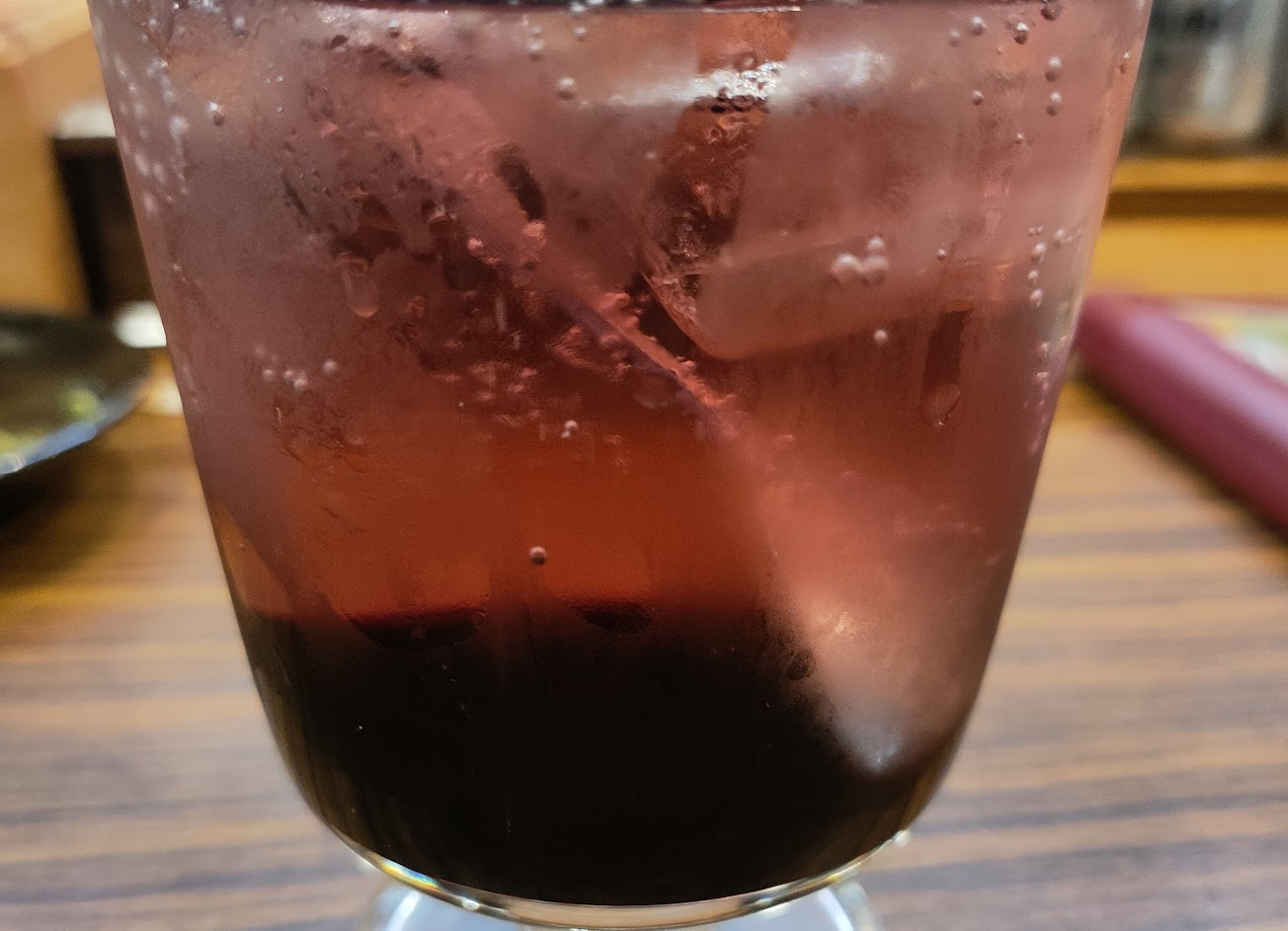 我點炸豬排丼、綜合生魚片及葡萄氣泡飲。