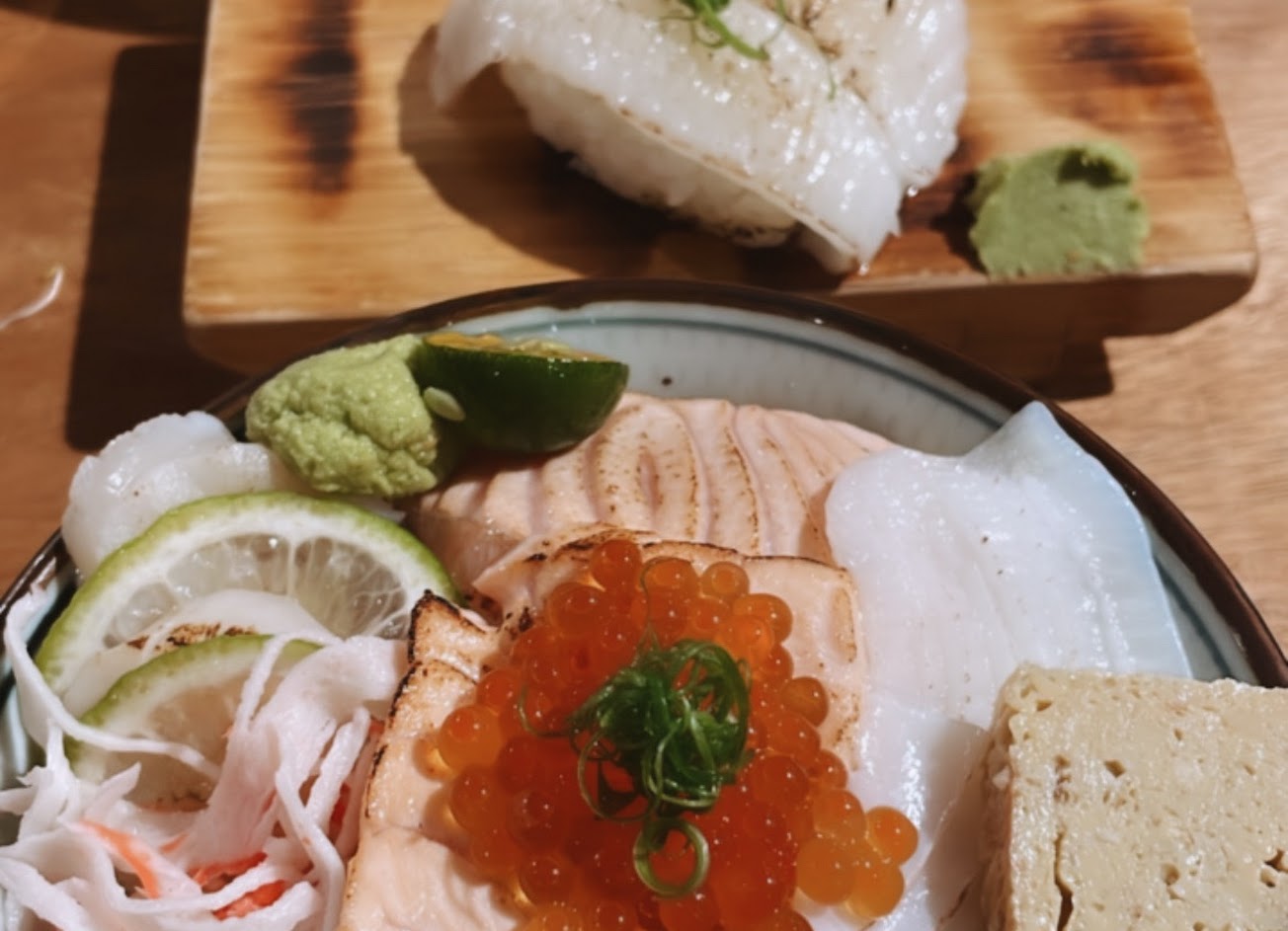 點的主食森川海景丼跟比目魚側緣丼表現也都是普普,感覺同價位可能別家店會有更好選擇;單品則有點網路上很多人推薦的明太子起司烘蛋,味道是還可以,但是一直有種家裡做的醬油蛋的味道(?)。