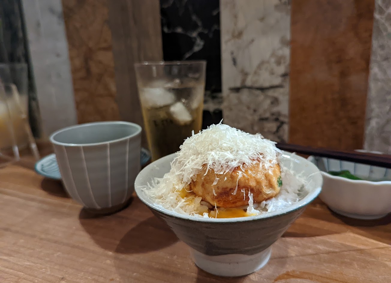 朋友點的明太子茶泡飯風味普通 他覺得過鹹 但剛被味玉鹹到的我吃不出茶泡飯的鹹味 我猜他可能是吃到一團明太子 而且他形容泡熟的明太子看著像田裡的福壽螺卵(Omg)