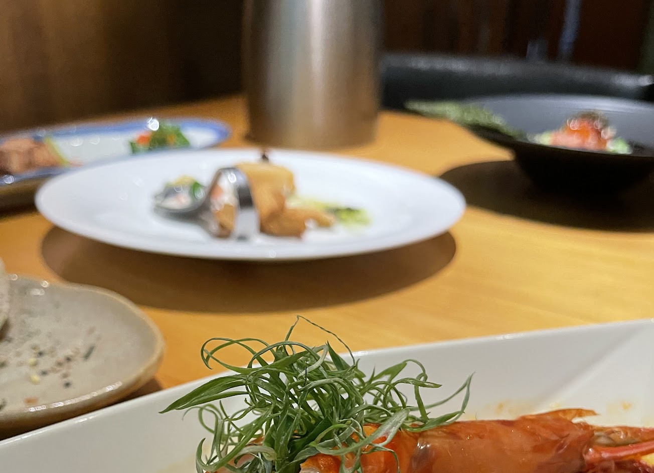 裝潢很典雅庭院感,內有吧台展示食材 服務的程度很恰當,不會主動說太多關於餐點的事,但詢問都會專業解答。 食材都是新鮮的,烹飪上中規中矩,不會讓人驚艷,但也是期待吃到的味道。 套餐份量很足,價位見仁見智,是聚會的好場所,但建議可以先點基本款試試看合不合胃口,再決定要不要邀請其他人來聚餐。 服務 內用 餐點類型 午餐 平均每人消費金額 $1,400-1,600 餐點:4 服務:5 氣氛:5 建議的餐點 香煎大虎蝦
