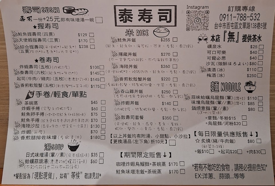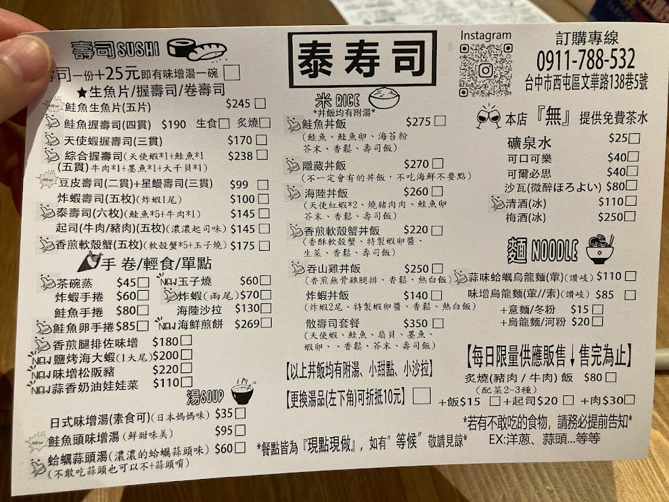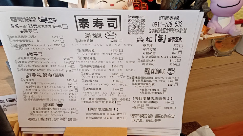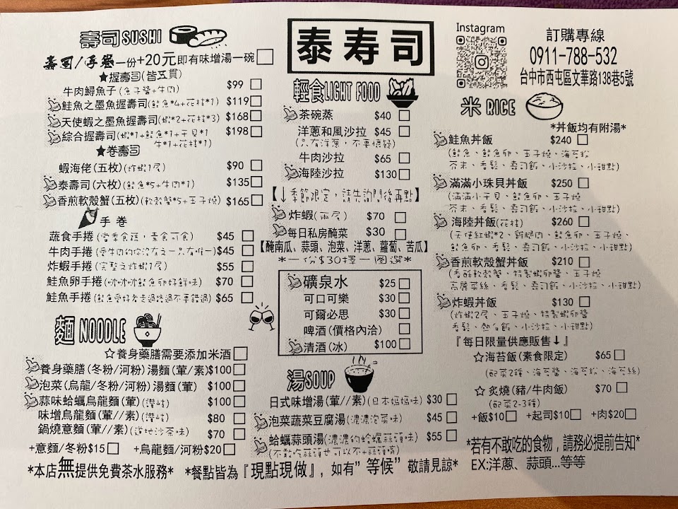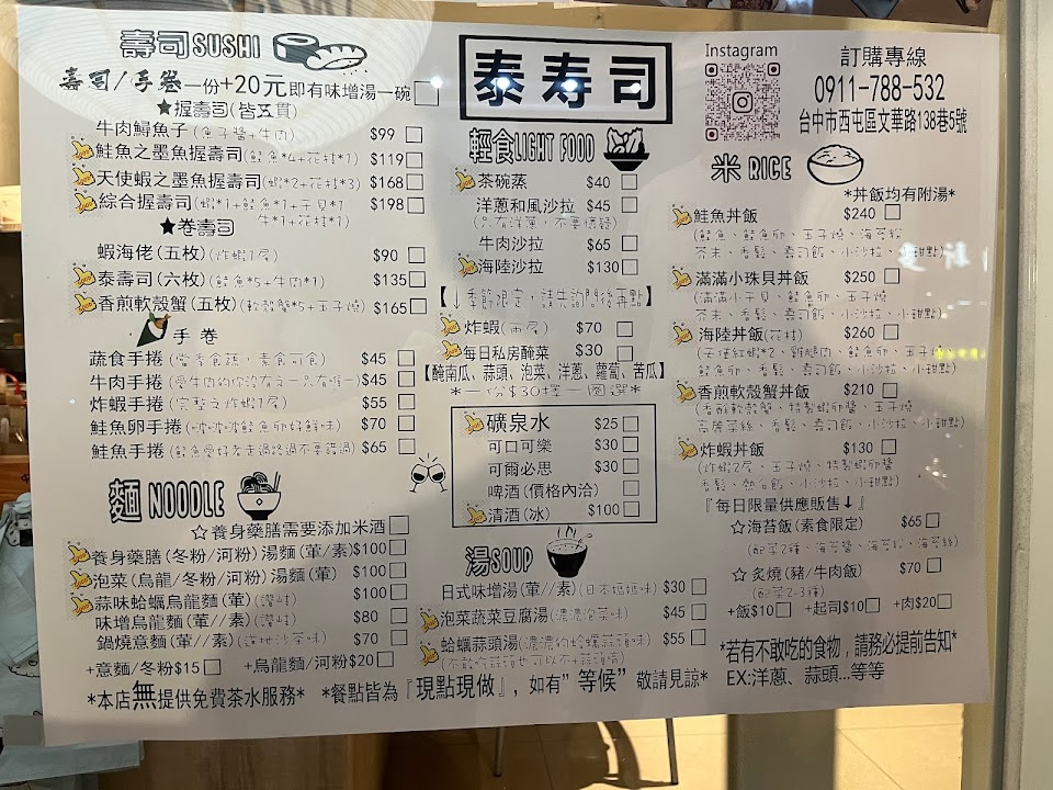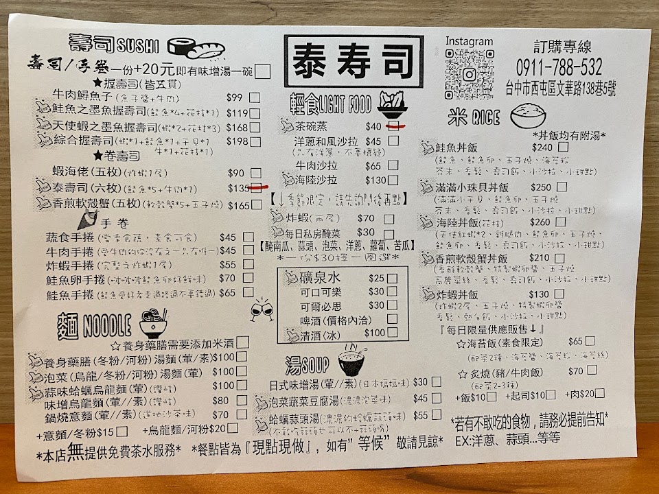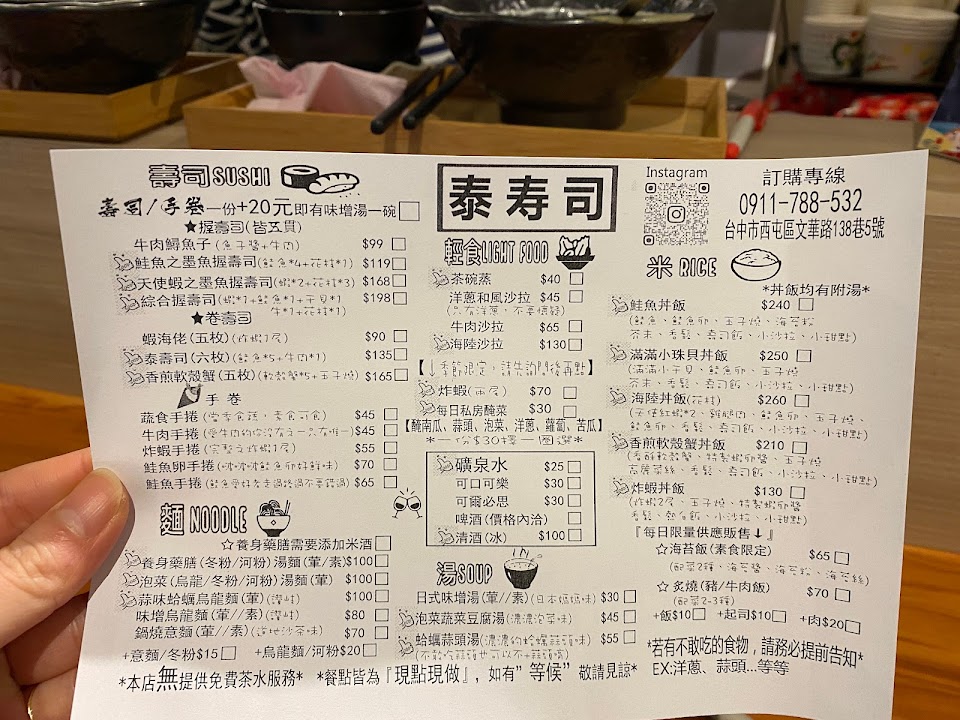 2024最新在地推薦餐廳的菜單_泰壽司-西屯熱門日本料理|日式壽司屋|平價日料|道地日料推薦|必吃日式料理|人氣壽司的菜單、圖片