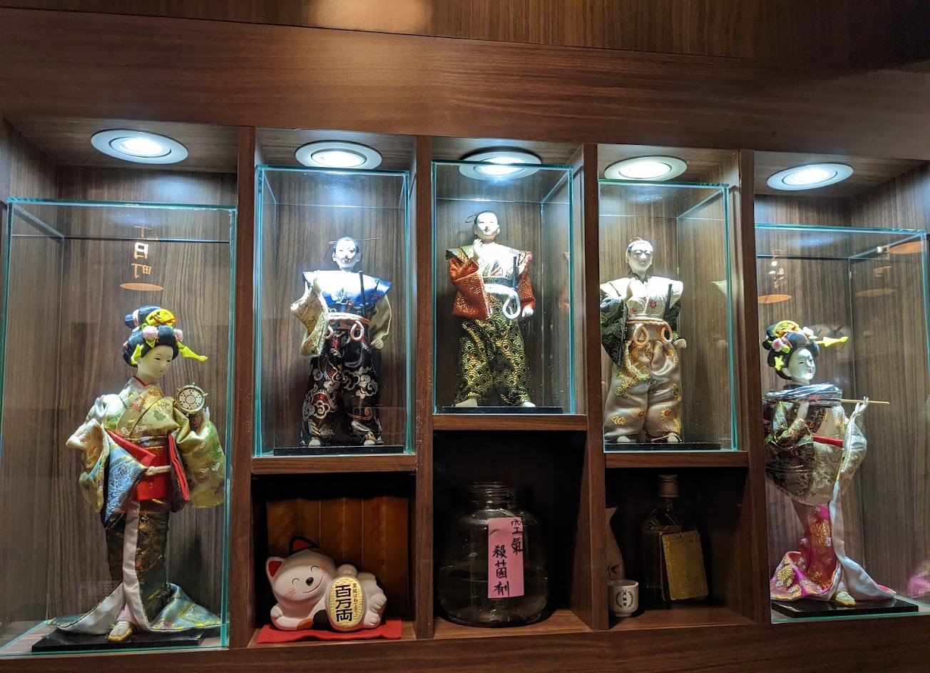 入座在吧台前 位置小了一點 所以定食外加點的東西會比較難放置 可以看到很多收藏品也是用餐過程中的一環