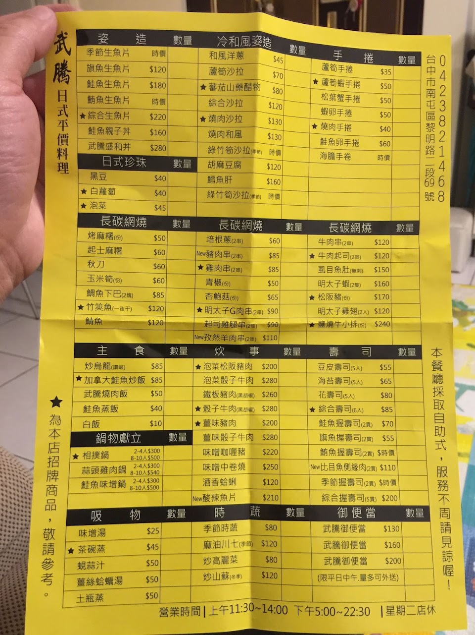 | 星期一 | 11:00–13:30 17:00–22:00 |