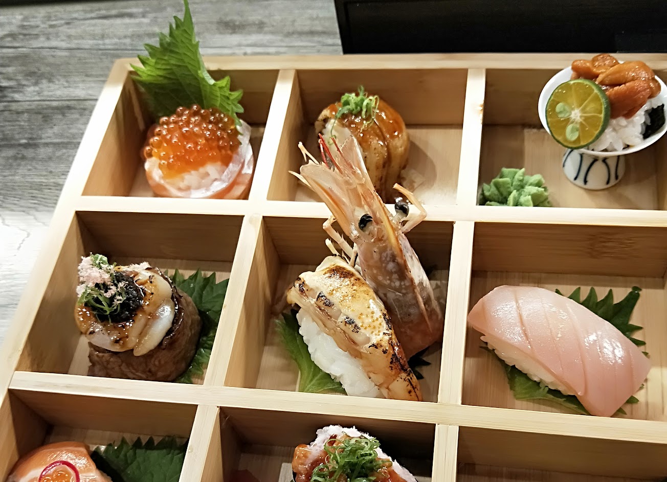 綜合10貫壽司 擺盤精美、份量又大,這麼長的炙燒鮭魚肚和滿出來的海膽!用料新鮮