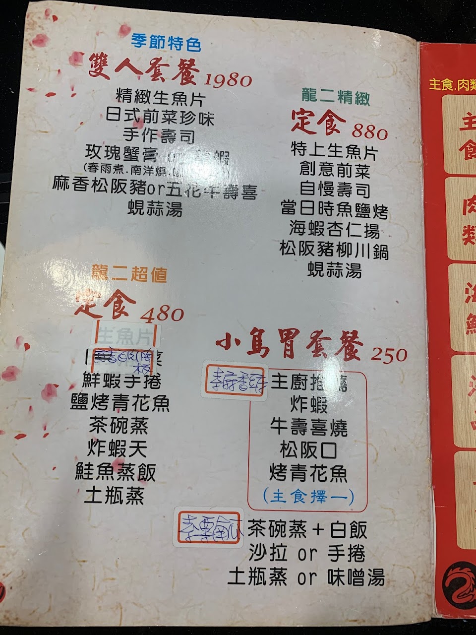 2024最新在地推薦餐廳的菜單_龍二日本料理食堂的菜單、圖片