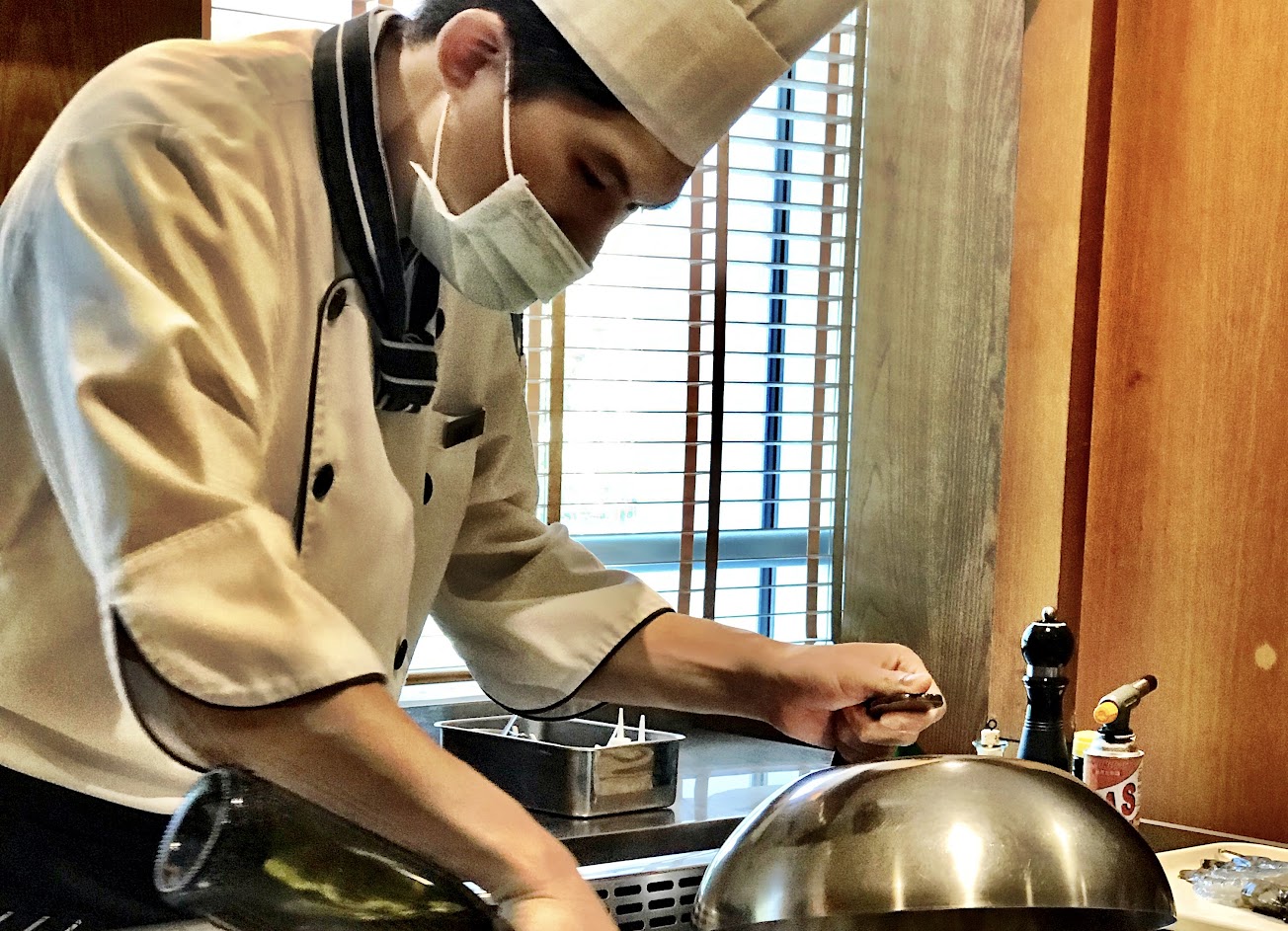 當天鐵板燒2位師父,服務我們與隔壁客人2人(一男一女中年夫妻),位子只隔了50cm的距離,我們從坐下來品嚐美食的那一刻起,鐵板燒師父(有戴口罩)與隔壁女客人(沒戴口罩)邊進食邊聊天,一刻也沒有停過,中間因為作業時間也換了2位鐵板師父,還是一直在聊沒停過?!