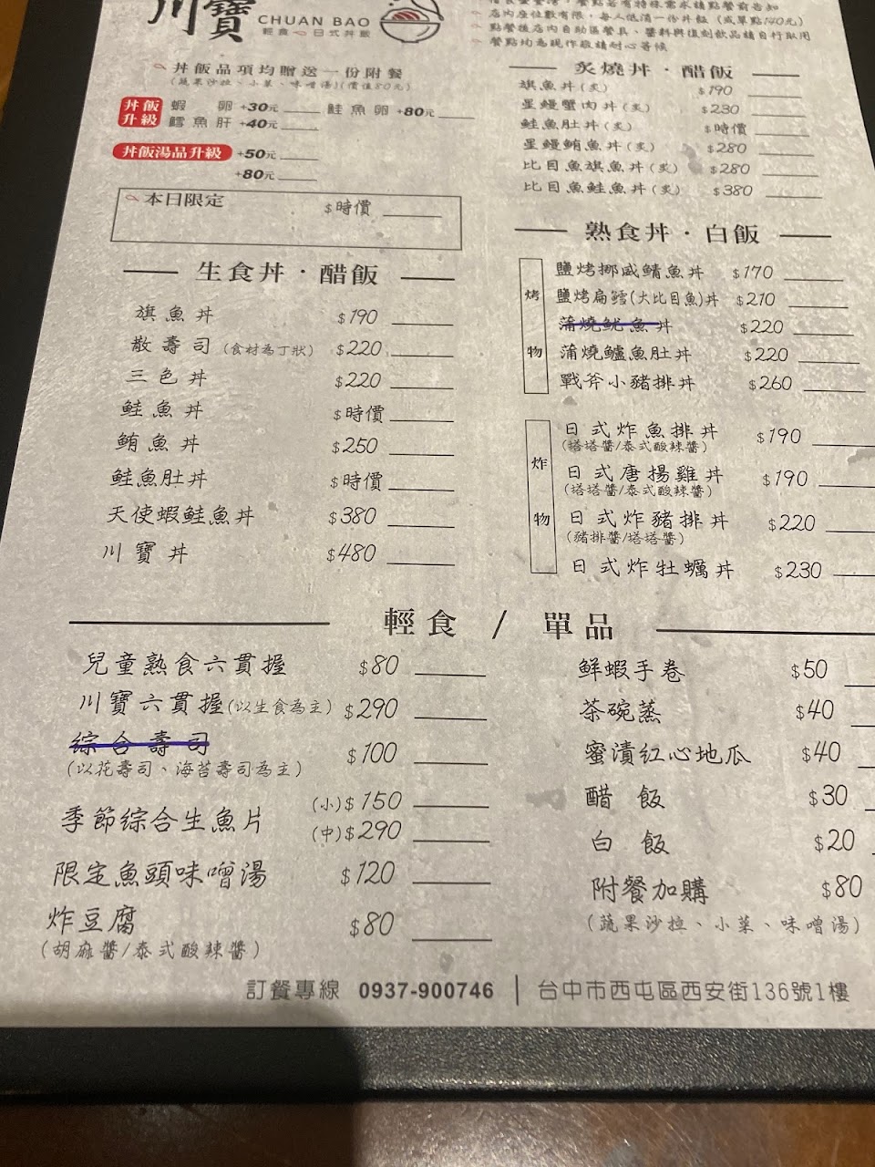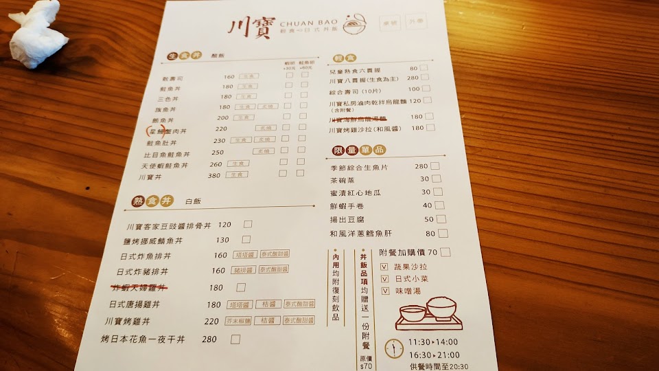 2024最新在地推薦餐廳的菜單_川寶 輕食·日式丼飯的菜單、圖片