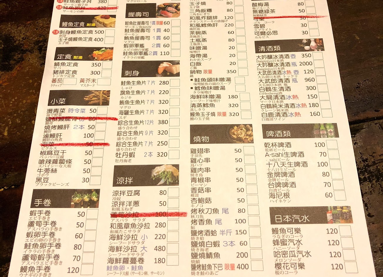 小菜好吃,但是烤肉串跟鰻魚飯味道以前比較好