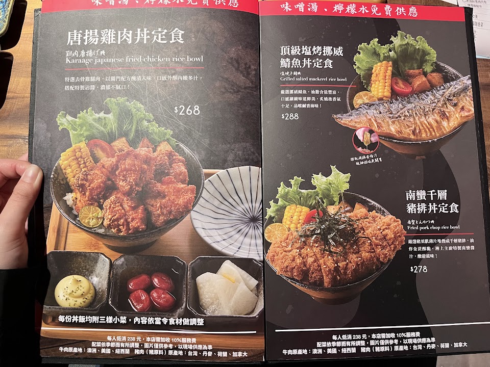 前兩桌進店,早早點完餐,同桌的人餐點都到齊了,附近桌也陸續上菜,才走過來說我的餐點要等,後面其他桌更後面點的客人有都拿到餐點了,又走過來說不好意思有漏單,前前後後一碗丼飯要等快半小時,只有一句不好意思,沒有其他補救措施或其他歉意,這樣的店也好意思收10%服務費,有夠爛,可以收一收了。