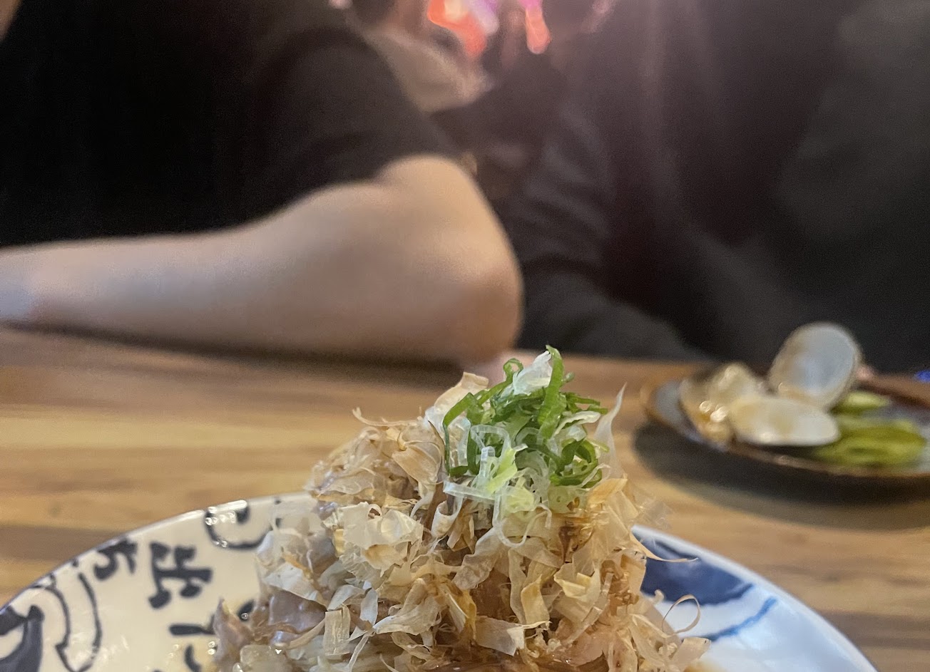 點了洋蔥鱈魚肝,青龍炒鹹豬肉,烤雞腿肉串,雞軟骨,比目魚跟蟹膏握壽司,烤香魚,鮮魚味增蛋湯。除了雞軟骨的裹粉太多,其他沒有好挑剔的,值得二訪。