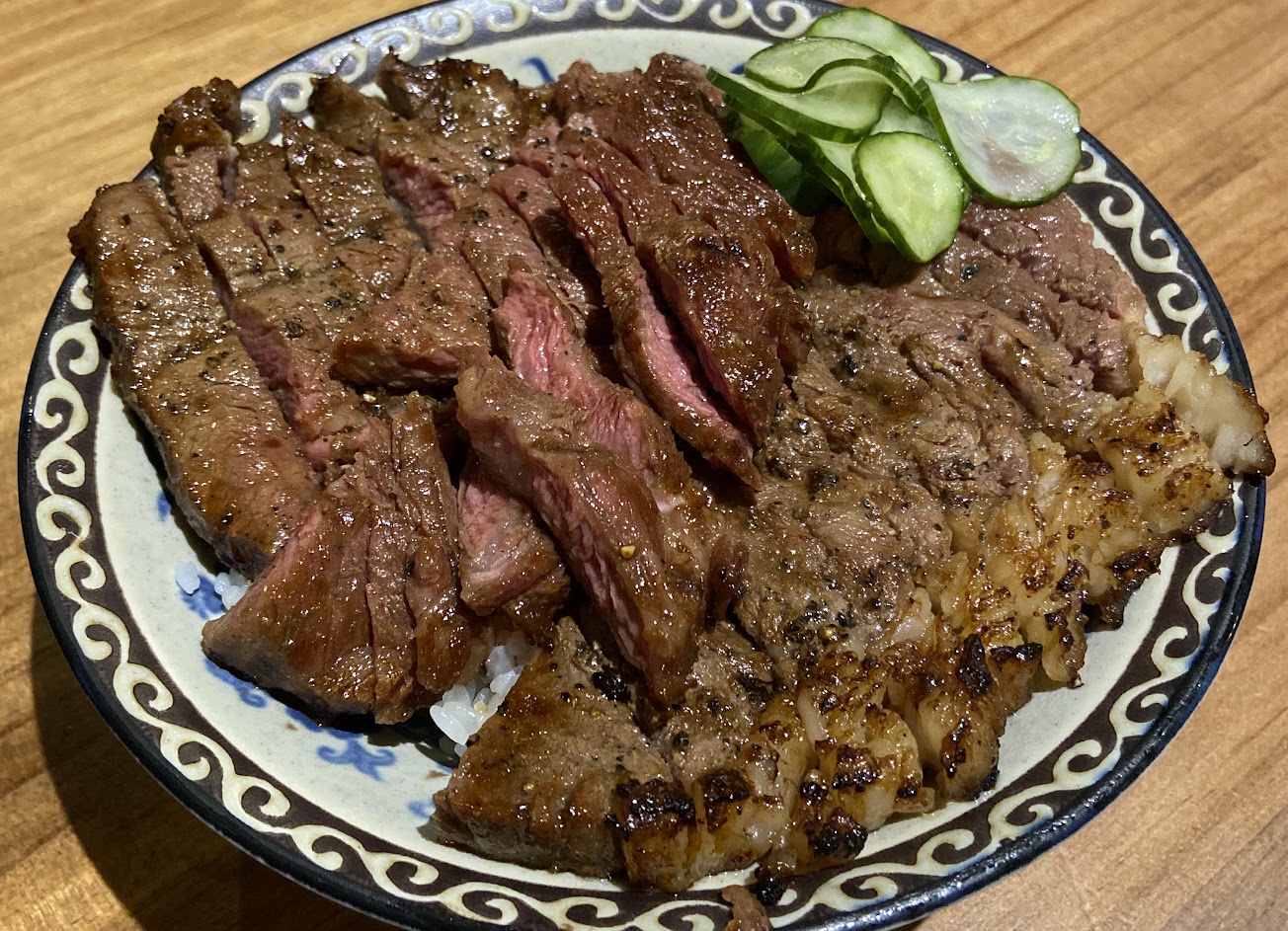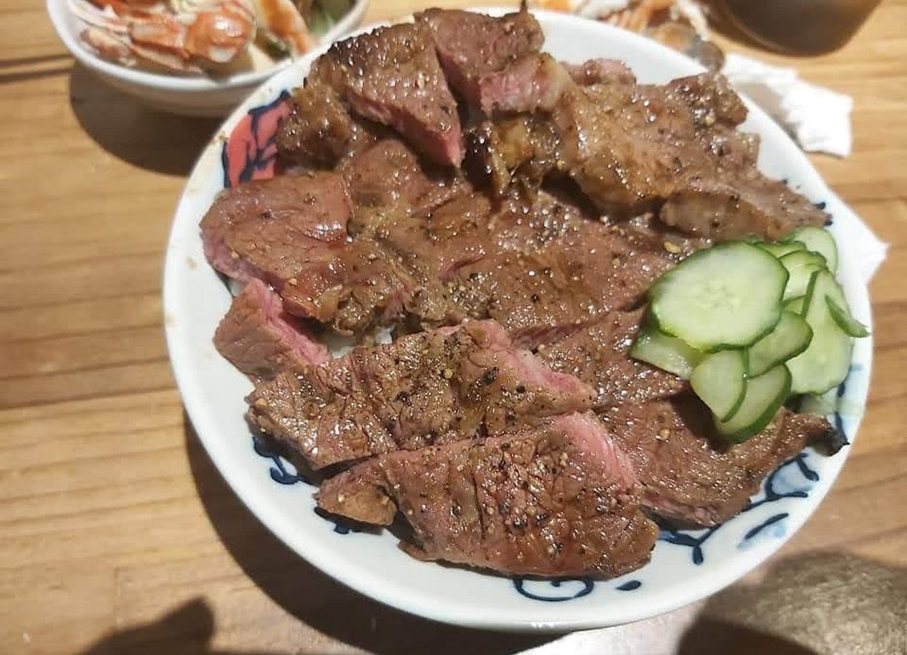 ㊙️牛排飯,鋪滿看不到底的牛排,完完全全是肉食性動物的罩門,現烤的牛排熟度拿捏恰到好處,筋的部份也不難咬,甜甜鹹鹹的醬汁跟粒粒分明的白飯也迷人,這一碗真的相見恨晚❤️❤️❤️