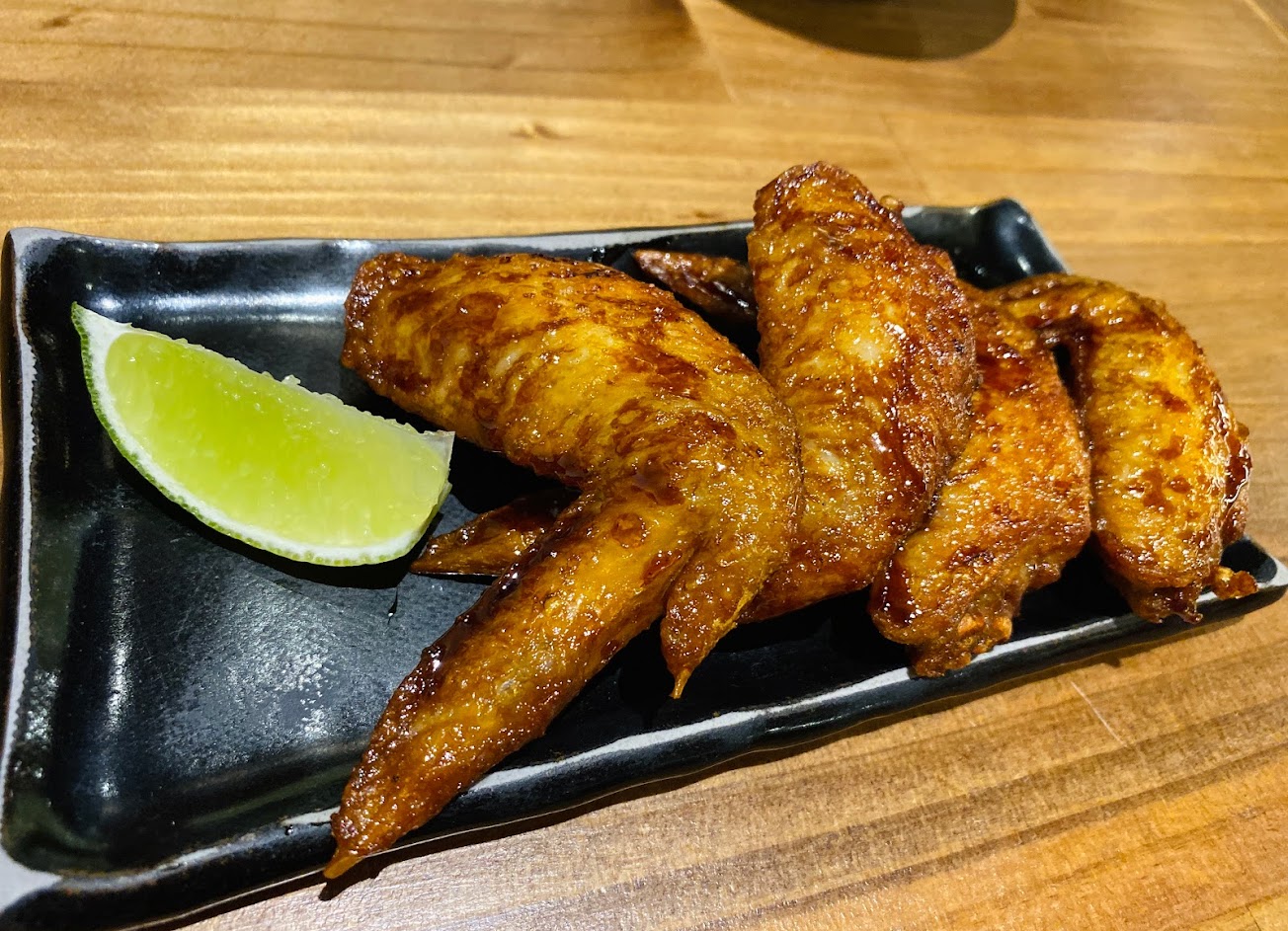 牛排飯肉質烤得很嫩!而且很入味,加上那個飯上面的鹹香鹹香的醬汁,一口接一口,很快就把飯給扒完了,不過牛排邊緣有一些帶筋的部分,牙口不好的人可能會覺得比較難咬。再來螃蟹味增汁真的要推一下,老饕吃螃蟹時,除了蟹肉,重點當然在於鮮美的蟹黃與蟹膏,這一碗湯放入整隻紅蟳,僅僅只有50塊,真的很優質!搭配和風洋蔥,嘴裡說不出來今晚的晚餐有多美味,主食、主湯喝完吃完後再來個雞翅,說到這個雞翅很美味,先炸後烤,擠一下檸檬上去,咬下去那一口外皮真的很酥脆,肉質很軟嫩,juicy 的油肉汁流了下來,好吃!吃下來的心得是東西不貴,雖然食物也沒到日式料理這麼的精緻厲害,但有著日式巷子家庭料理小店的感覺!