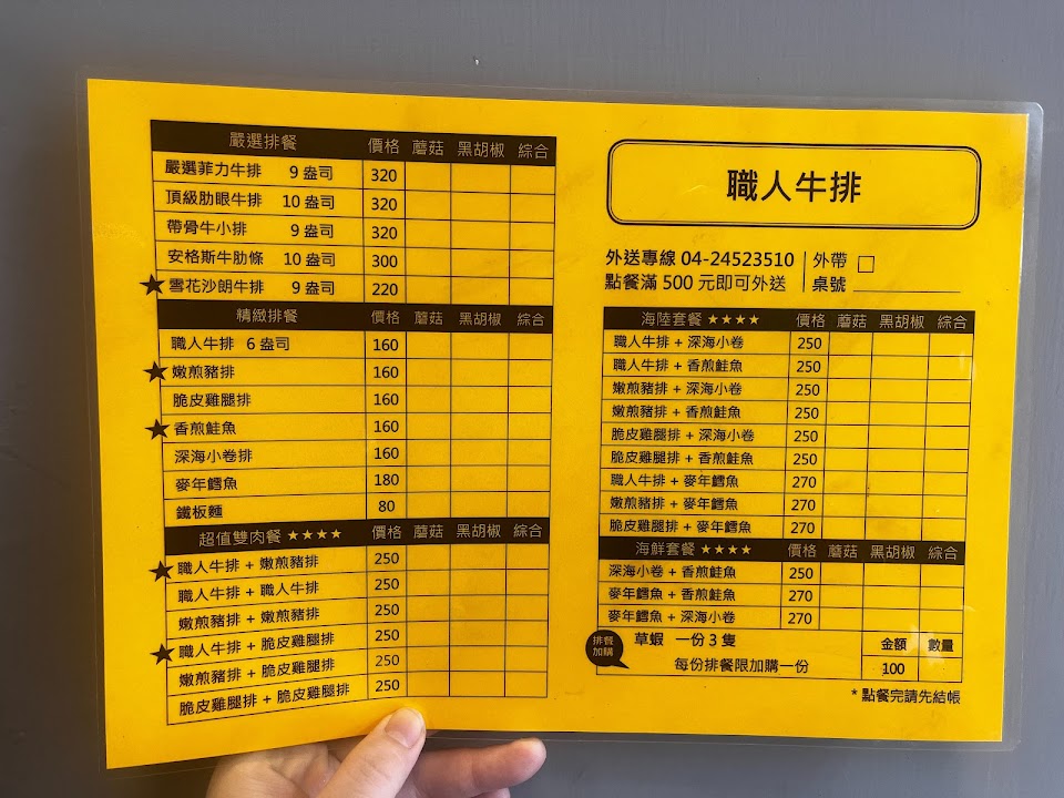 2024最新在地推薦餐廳的菜單_職人牛排 逢甲店的菜單、圖片