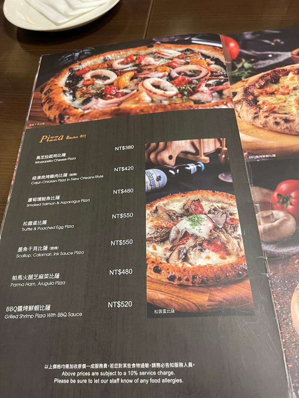 芝麻葉火腿比薩, 墨魚干貝比薩, 煎鴨肝蘑菇燉飯, 301大道沙拉