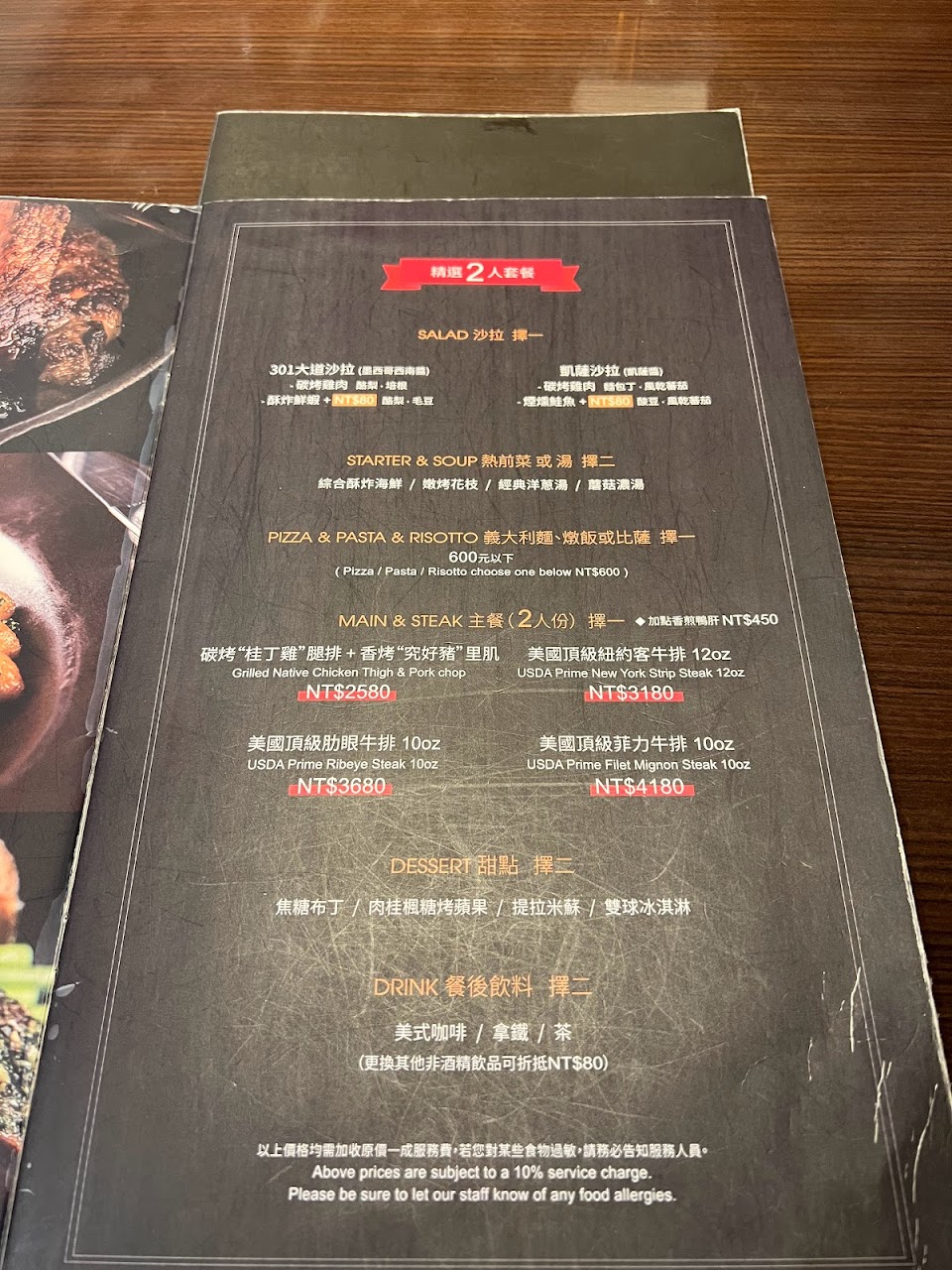提早慶祝父親節來用餐,點兩種雙人套餐,牛肉7分熟很好吃。鴨胸完全不柴,值得推薦。份量不算多5人點雙人套餐2份剛好