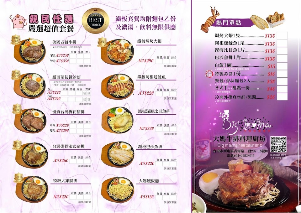 2024最新在地推薦餐廳的菜單_Bigmama牛排料理廚坊的菜單、圖片