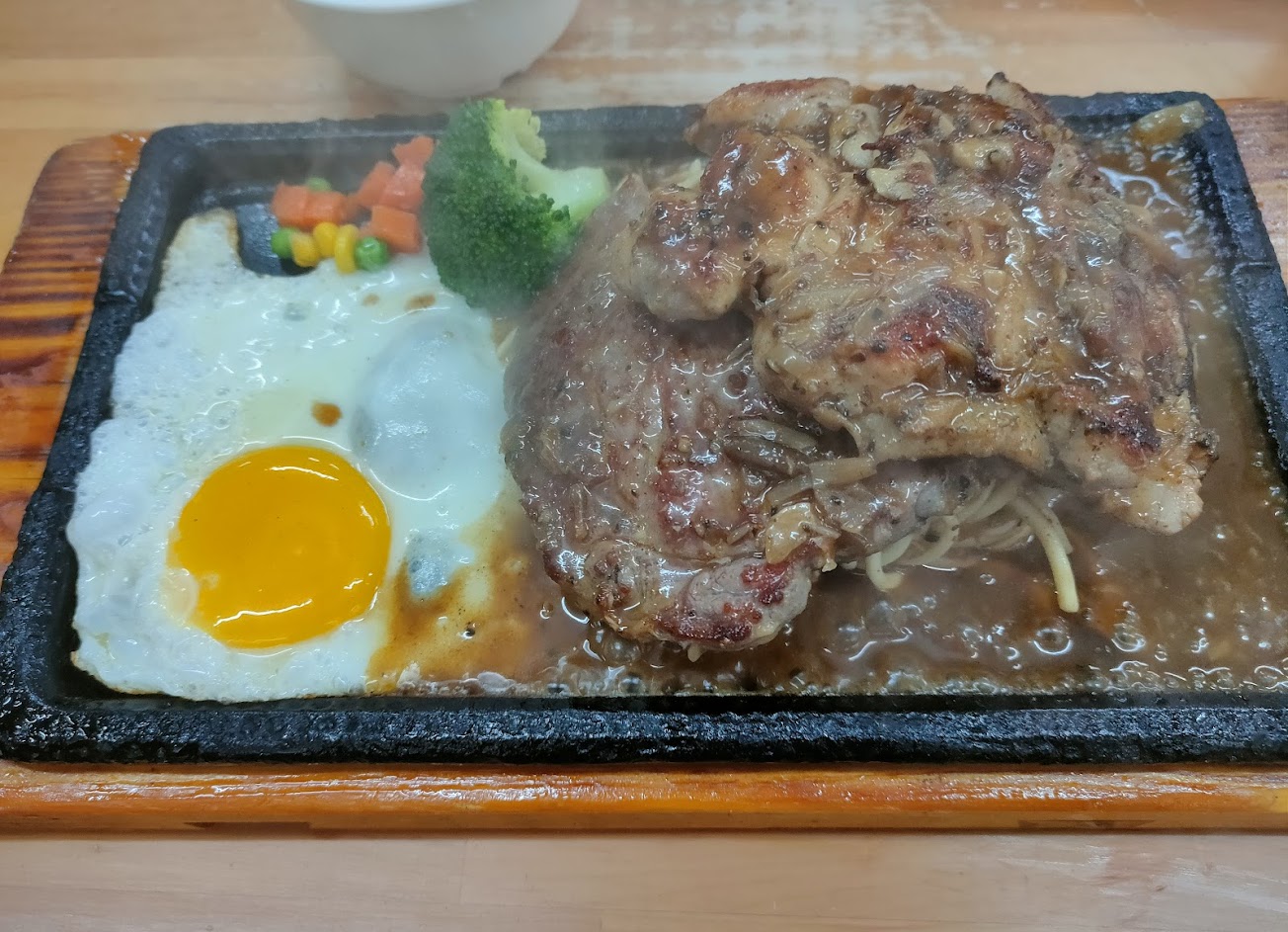 豬排、雞腿排都很好吃,只是肉煎得比較【焦】,這樣確實比較香,但【焦黑的部分】比較容易致癌。