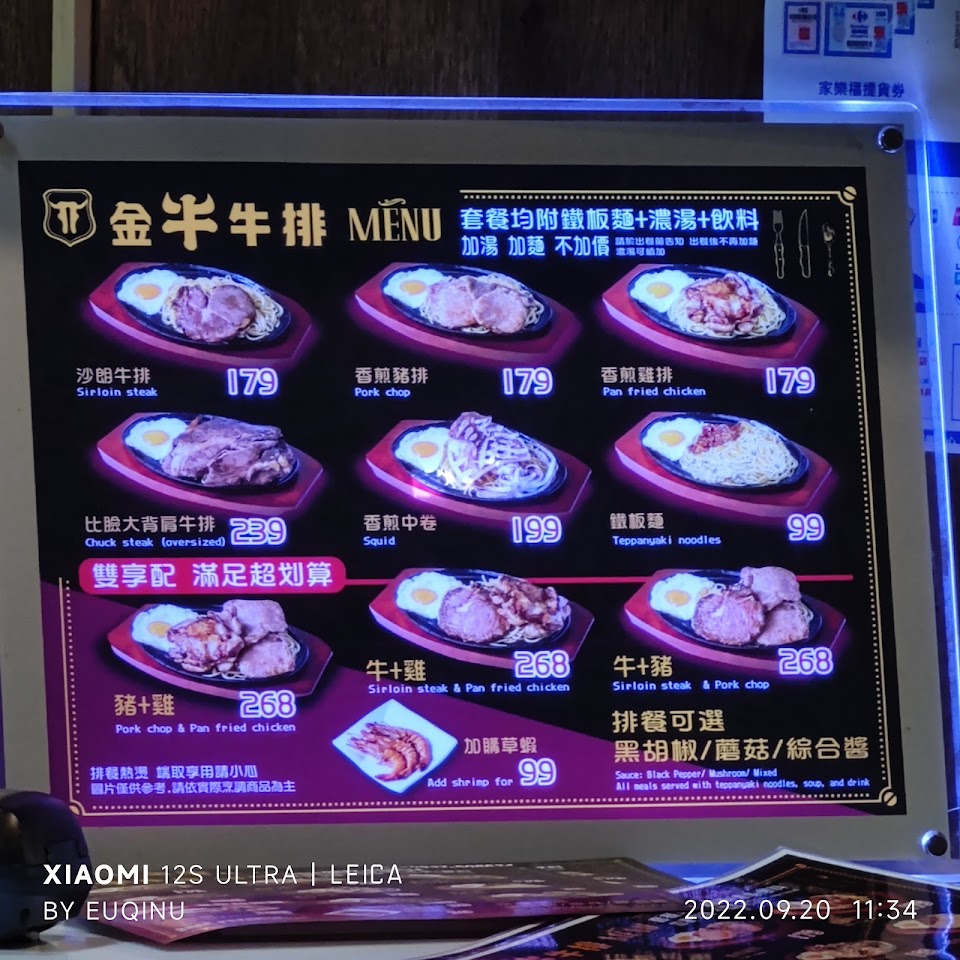 真的不如去吃夜市,夜市裡有可隨便取用的牛排醬和辣椒醬,面和肉上淋的滿滿的黑胡椒醬,還有熱到燙口的玉米濃湯!