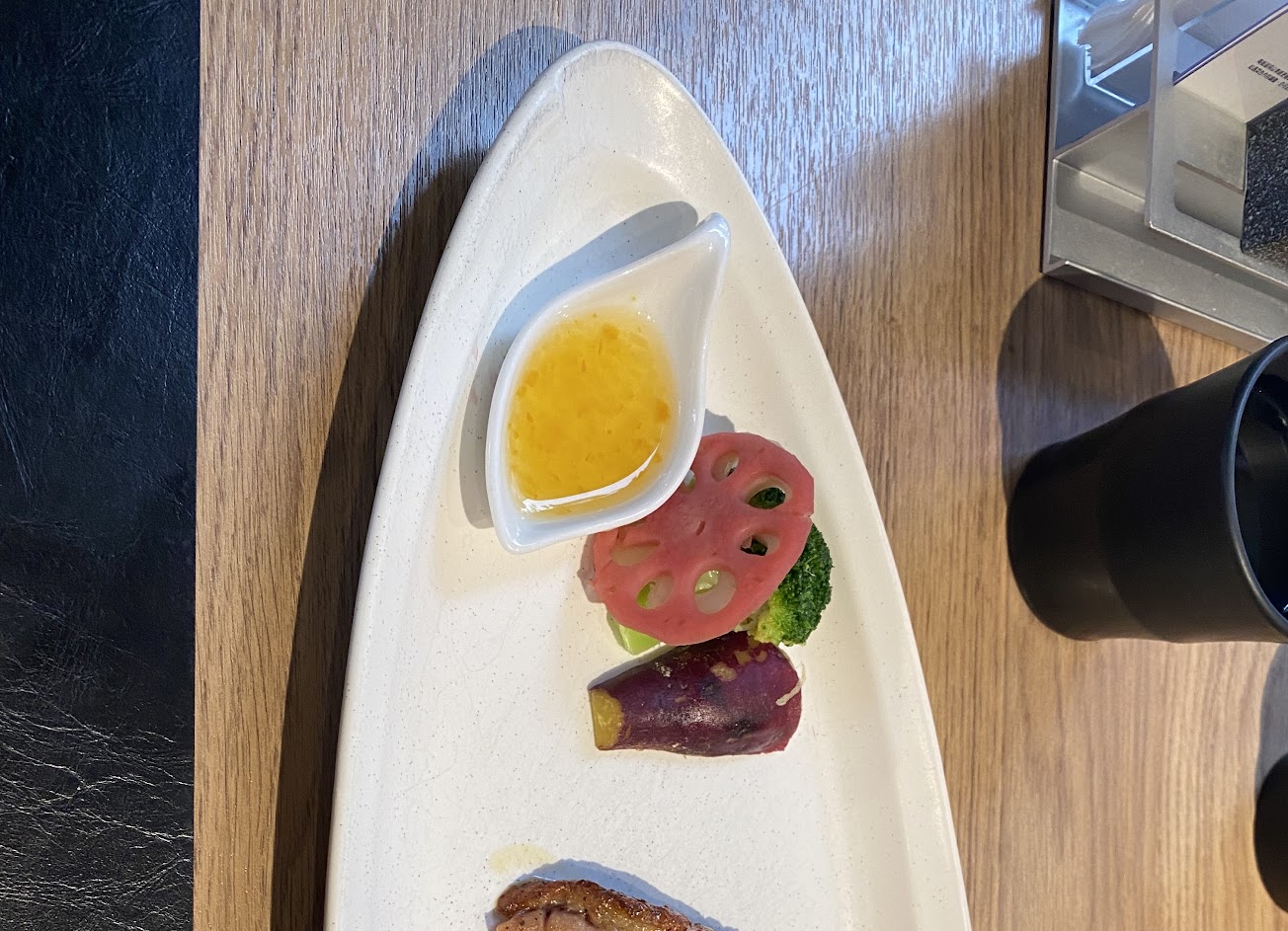 餐點好吃,唯一挑剔一點的就是咖喱海鮮炸飯糰,咖喱味太重,基本上就跟咖哩炸飯糰一樣了。另外,炸飯糰忘記上,上甜點的時候才發現,對高價位有收服務費的餐廳來說,蠻不應該犯得錯,中間有個用餐斷層,感覺上變得不是很好。