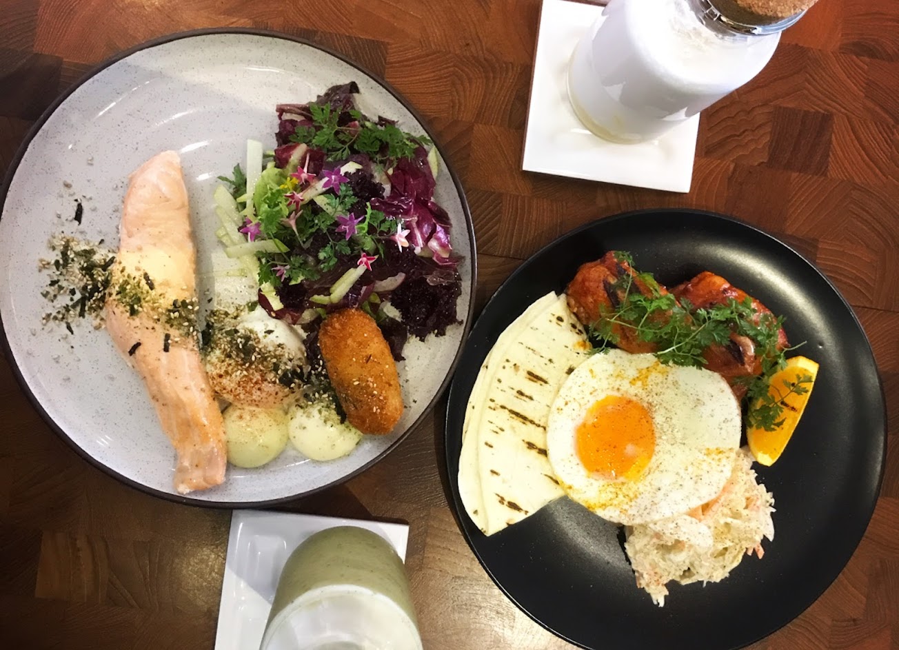 又鮮又嫩的低溫烤鮭魚是推薦必點招牌,再來杯拿鐵或現榨果汁,早午餐吃得心滿意足。溫馨的小店,假日來用餐建議先訂位。