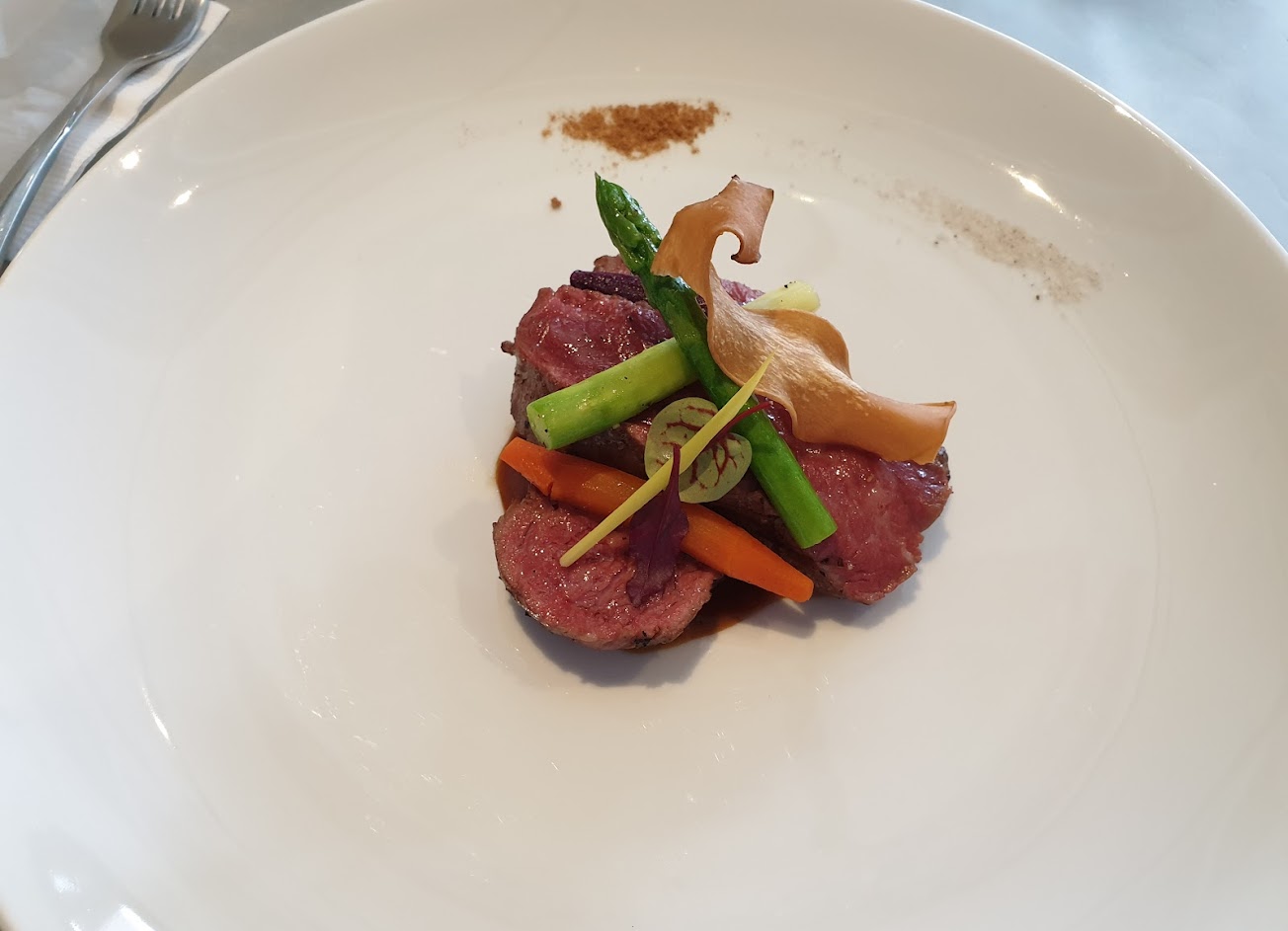 這次點了和牛套餐 最讓我驚艷的是煎的恰到好處的鴨肝 表面焦香內在油香十分美味 在吃完麵包後 還會有人員幫忙把桌上的麵包屑整理乾淨 蠻貼心的 有那麼一點美中不足的地方在於 有一道鮑魚與紅藜料理 底層的紅藜調味比較重 導致改掉鮑魚本身的鮮味