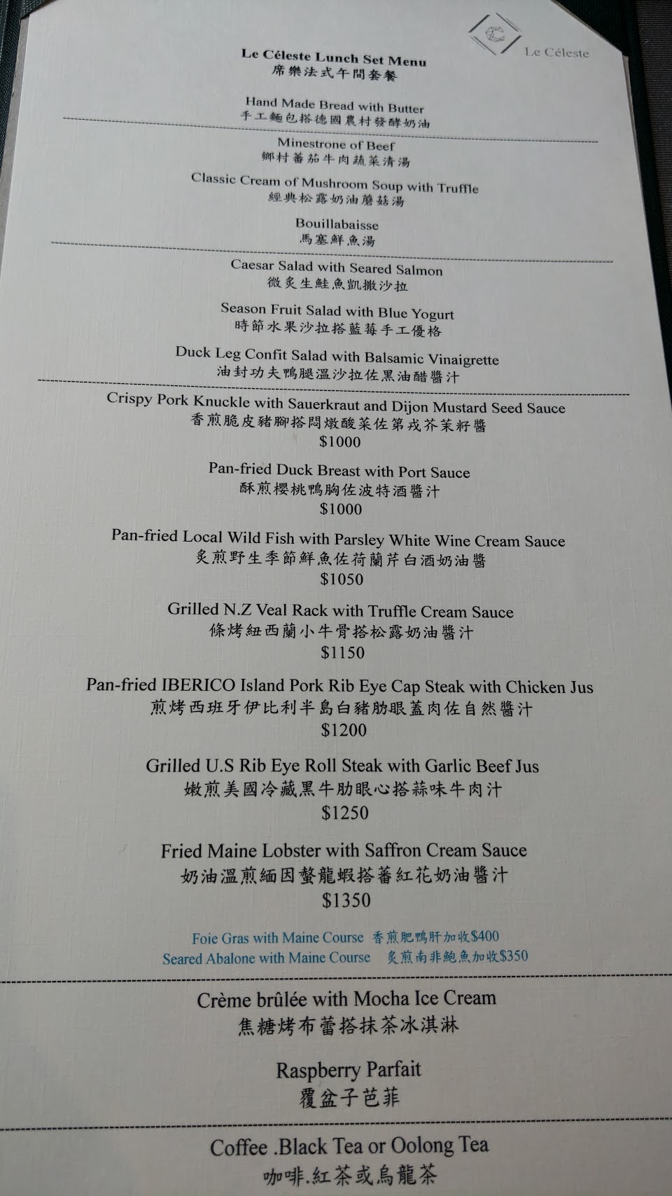 在 Le Céleste 席樂法式料理用餐就像經歷了一趟豪華的歐洲之旅,喜愛在旅途中遍嚐各國在地美食的我, Le Céleste 席樂法式料理更讓我重溫曾經在法國與西班牙旅行時的美好回憶。除了食材選用高檔,料理的精緻度、細膩的服務,以及優雅的環境,在在都讓人覺得物超所值,這樣的價位實在花得值得! 若平日午間前來更有1000元的超值商業午餐可以選擇,如果有慶生、約會甚至多人歡聚的包廂需求,不妨將 Le Céleste 席樂法式料理納入首選,保證讓您擁有一場美味與感官的雙重享受之旅!