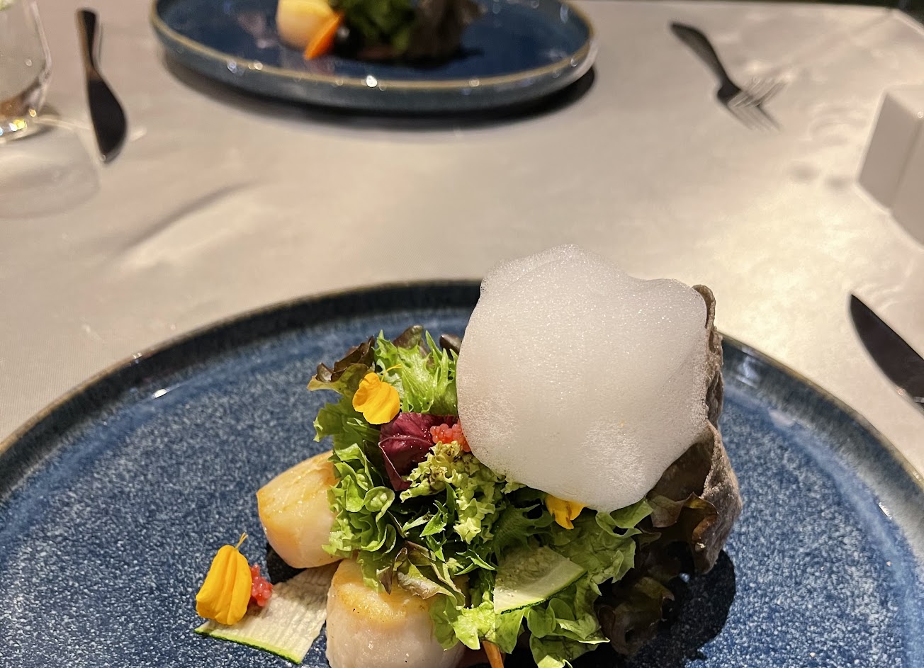 整體還不錯,北海道干貝沙拉沙拉跟炙燒南非鮑魚口感令人驚豔,主菜龍蝦跟5A和牛也是中上階層,整份套餐口感很好,用餐氣氛佳,