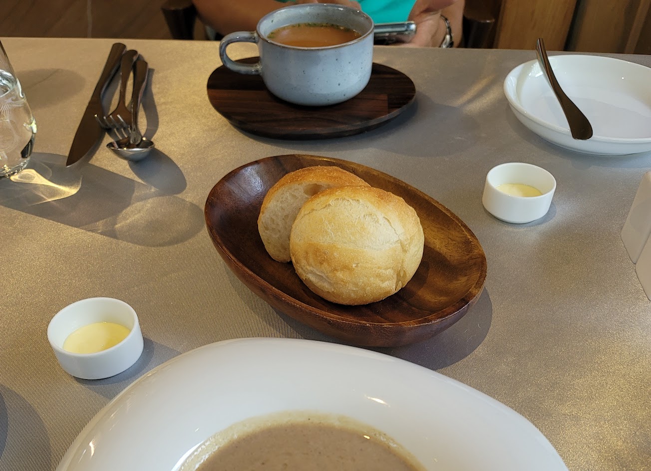 喜歡麵包,覺得好吃,奶油、橄欖醬搭配一起吃,很美味,前菜部分看著精緻漂亮,入口後就沒什麼印象,