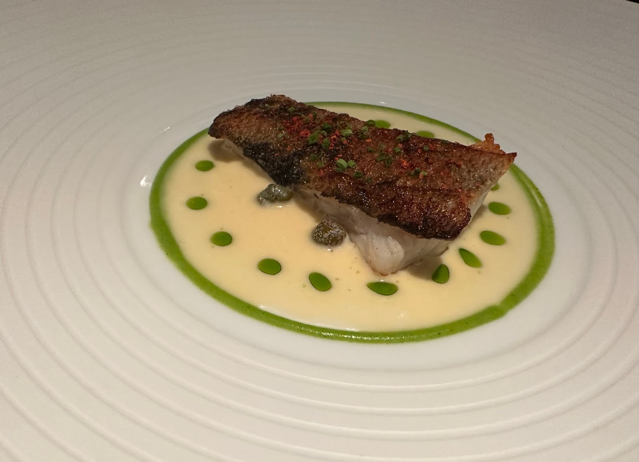 魚皮酥脆魚肉口感紮實,沾上百香果酸算的再疊一層羅勒油的香氣,哇~醬汁太絕了~ 超級厲害