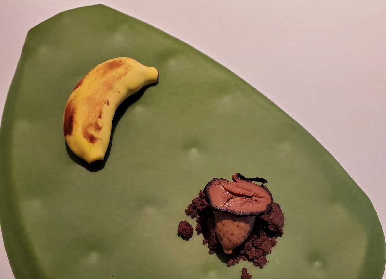 回到餐點本身,首先,我吃的每一道菜幾乎無雷,他滿足了色香味上的感受,選用的一些在地本土的食材去做變化,什麼花東的小甜菊(實話說我不知道那是什麼XD),台東的釋迦,雲林的花生,台灣的香蕉等。但也有伊比利豬肉,干貝,蟹肉之類的高檔食材,上菜的時間點都掐得很好,讓我們既可吃飽,又有空檔可以好好聊天。