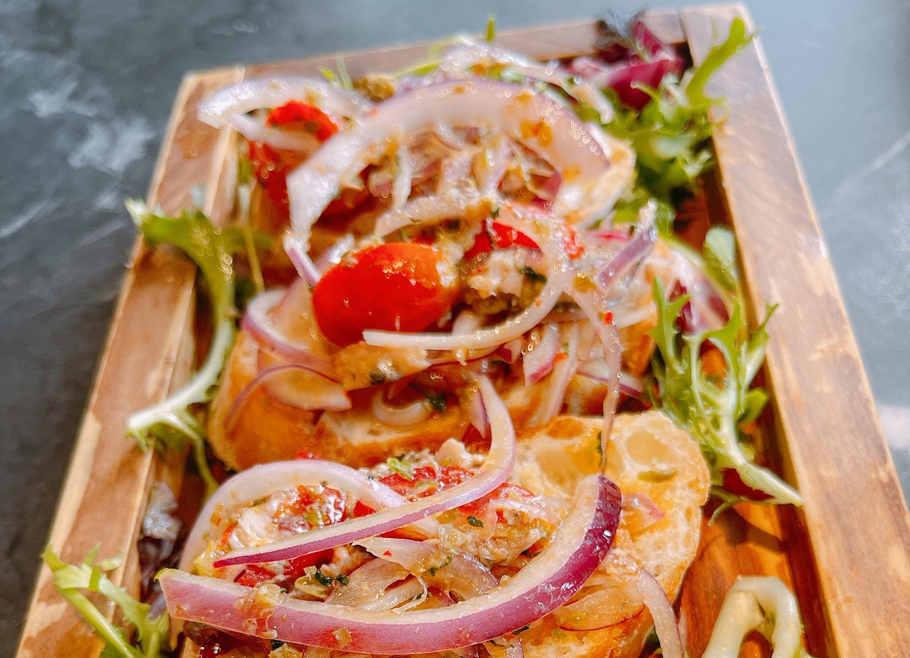 「Meet覓舍」是一間跨國界創意餐廳,主要以西式的創意餐點為主,也附有清酒等酒類可以選擇。這次點的主餐是火焰德國豬腳及美國特級肋眼牛排8oz,尤其是德國豬腳特別用萊姆酒搭配迷迭香煙燻,別有風味,無論是視覺或是味覺都很驚豔。Appetizer則是蘇格蘭鮭魚佐奧斯嘉魚子醬及鮭魚卵,口味香濃,且鮭魚非常多汁!?湯品則是石頭鍋馬賽魚湯,味道類似番茄燉湯,魚肉口感鮮嫩,湯頭微濃好喝。而肉醬千層義大利麵上面鋪上滿滿的莫扎瑞拉起司,是起司控必點的料理!? 是一間值得嘗鮮的餐廳。