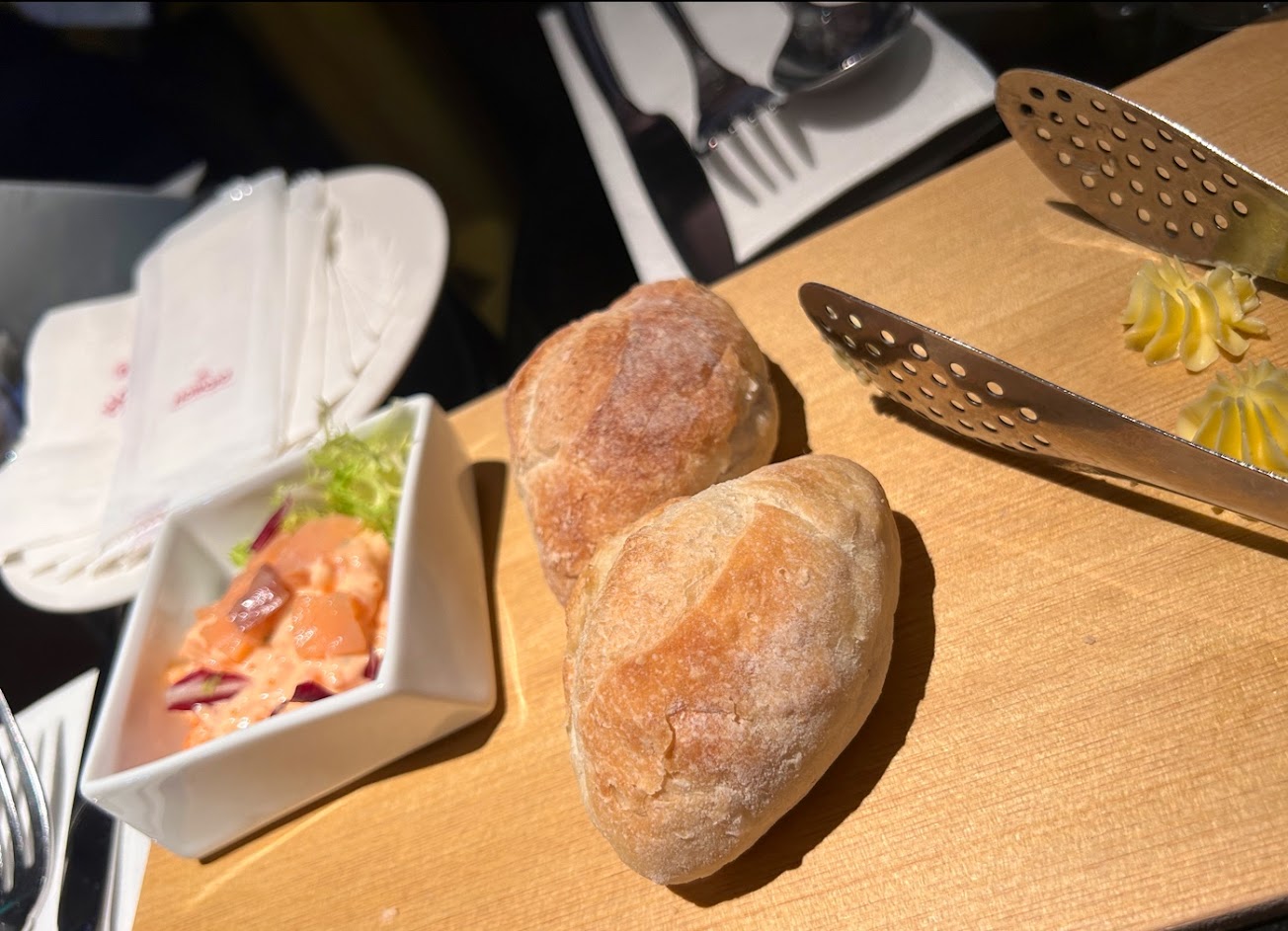 餐後紅茶想附牛奶,回:「應該」沒有???,於是換一個像主管的問後說可以提供,不過也是忘記附要提醒,餐點一共麵包.前菜.湯.主餐.甜點,到主餐前每道至少等到20分以上(也沒什麼擺盤,餐點溫度都是溫的),主餐有先預點好龍蝦跟牛排,牛排先上後,等快20分鐘後才上龍蝦,牛排都吃完收走了,龍蝦才上,就問除夕餐定義是??餐點和服務我覺得比超商還爛,服務員各種ㄎㄧㄤ,餐點普通中下,不是我在浮誇,整場大概有三分之一人想客訴吧(可能更多:)
