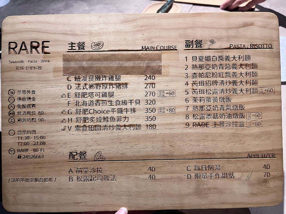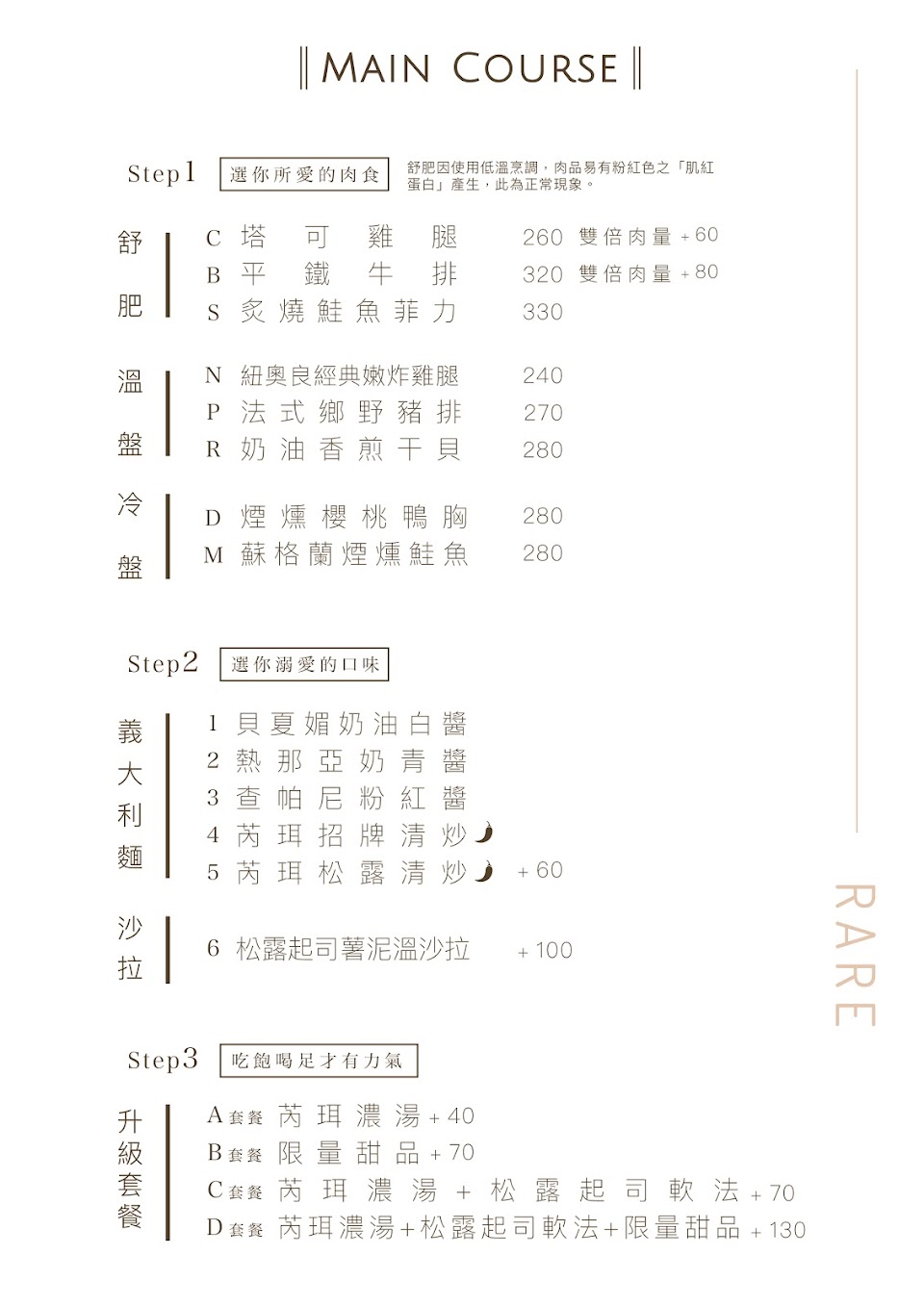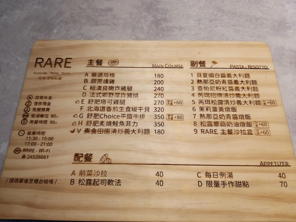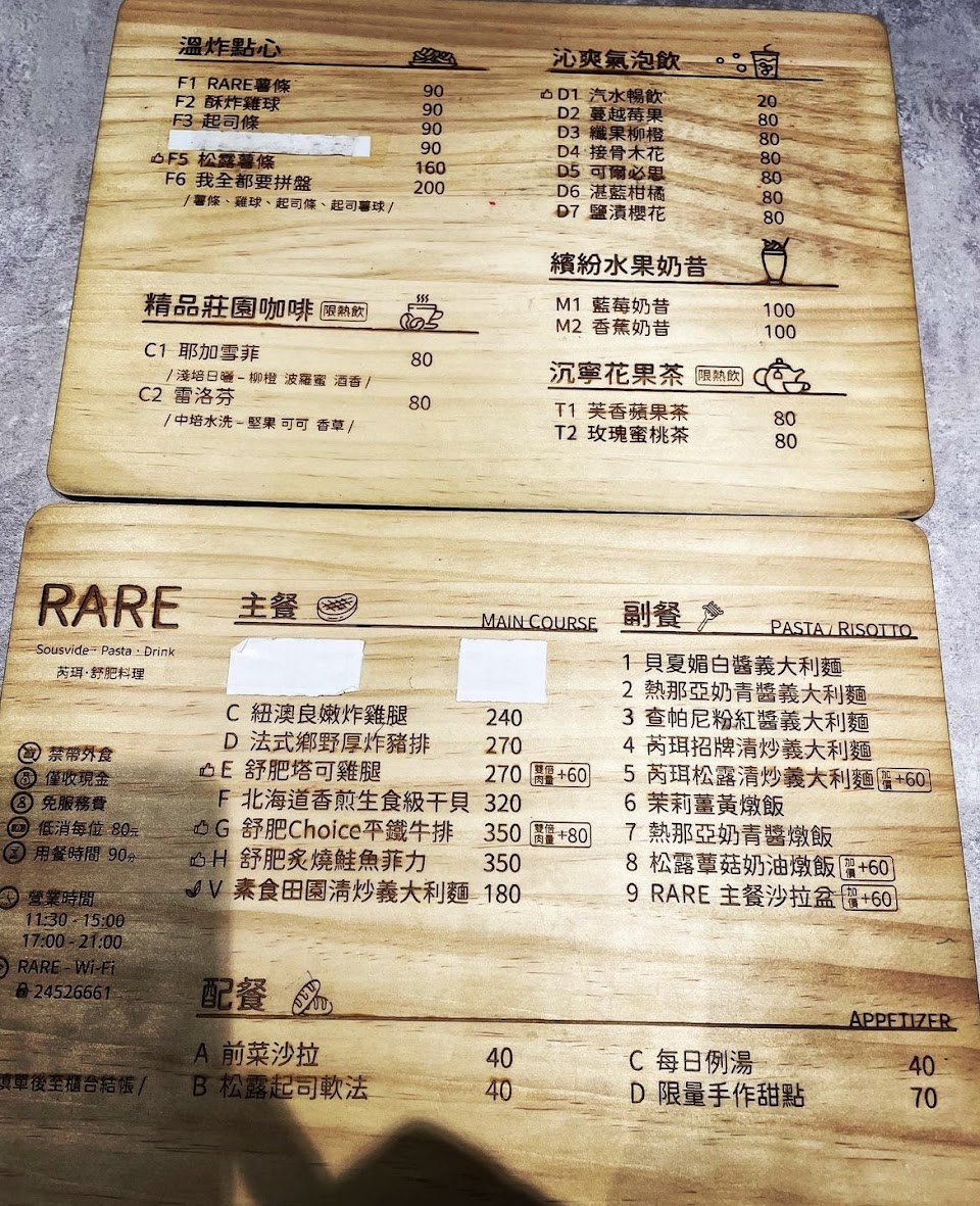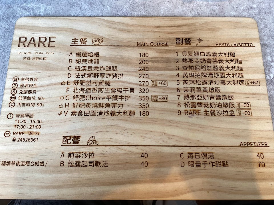 2024最新在地推薦餐廳的菜單_RARE 芮珥|逢甲店的菜單、圖片