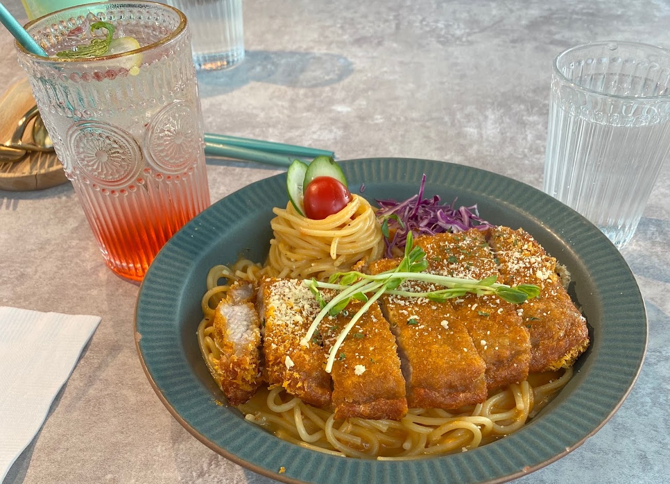 店面很明亮寬敞,餐點也好吃份量足,可惜給我漏單了,等了一小半才上餐?