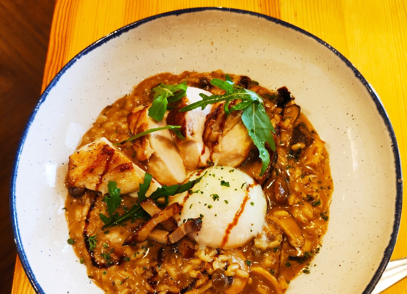 -牛肝菌菇烤雞與65度c溫泉蛋燉飯?