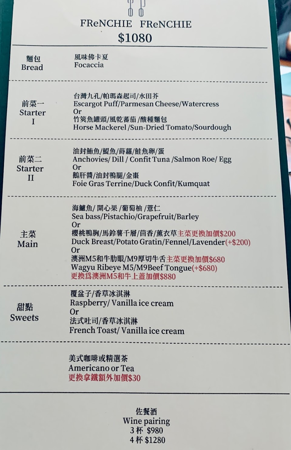 漲了$680~但是餐點的精緻度還有餐點的擺盤跟餐點的食物都減少了~兩個人5400多,感覺沒有那個價值