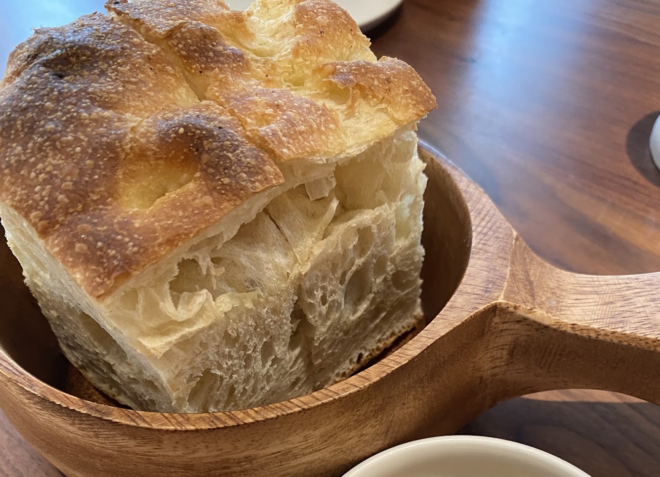 看起來平淡無奇,其實功夫藏在裡面!吐司的中心柔軟蓬鬆,沾一口冰淇淋真的是好滋味!