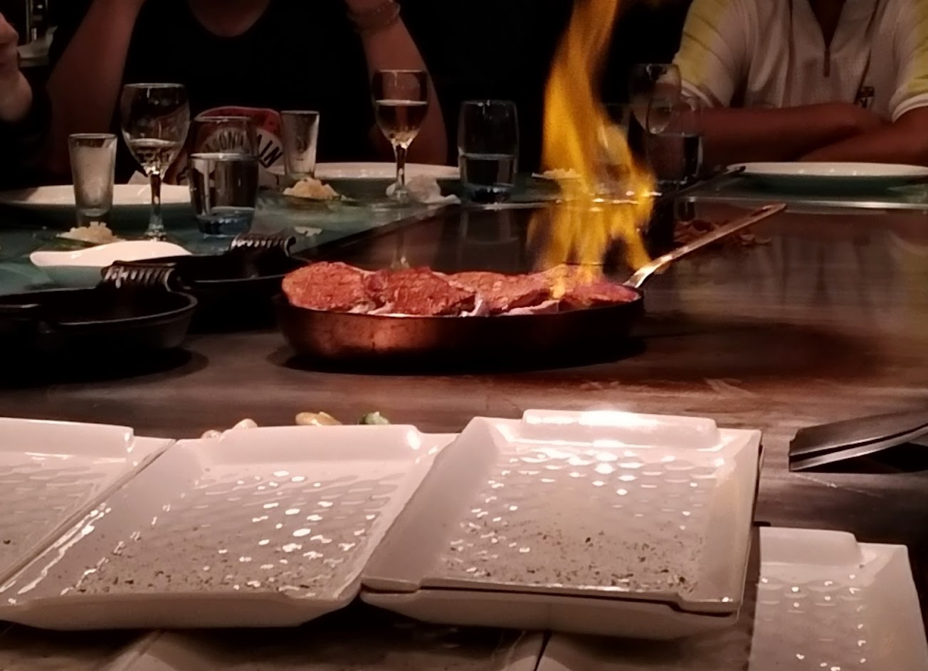 主餐的牛肉煎的很好吃,單考慮牛肉一千初頭絕對有其他選擇,但主餐外的沙拉、甜點、飲料等表現很棒,香檳好喝、甜點也好吃!主廚點火前還會提醒要拍照的快拿出手機。