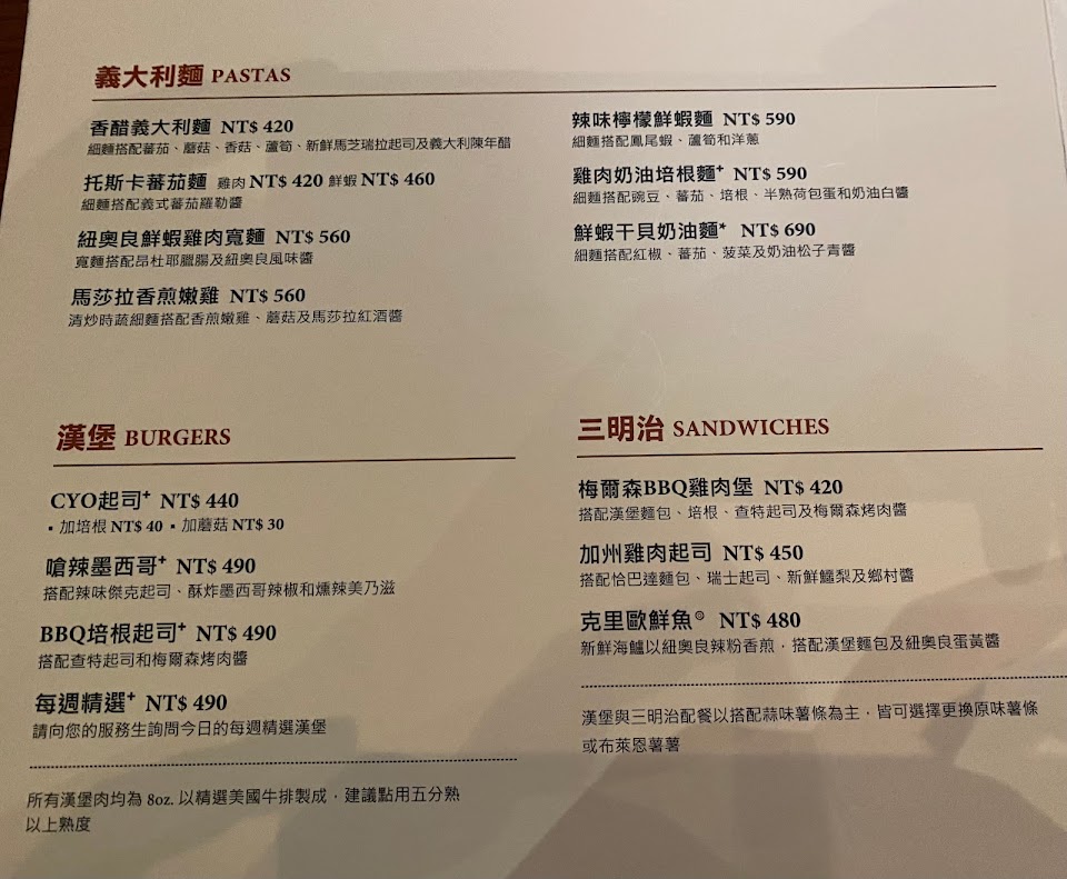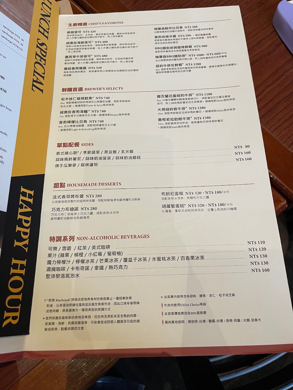 美式風格的啤酒餐廳,有特定時段的happy hour(覺得美中不足的,廚房的大門敞開,影響用餐氣氛)