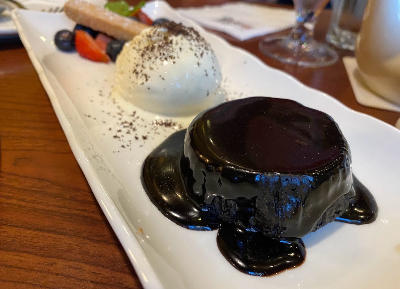 甜點部分推薦布朗尼蛋糕,烤過的熔岩布朗尼蛋糕搭配香草冰淇淋,半融化的冰淇淋與熱熱的布朗尼一口吃下去真的讓人無法抵擋