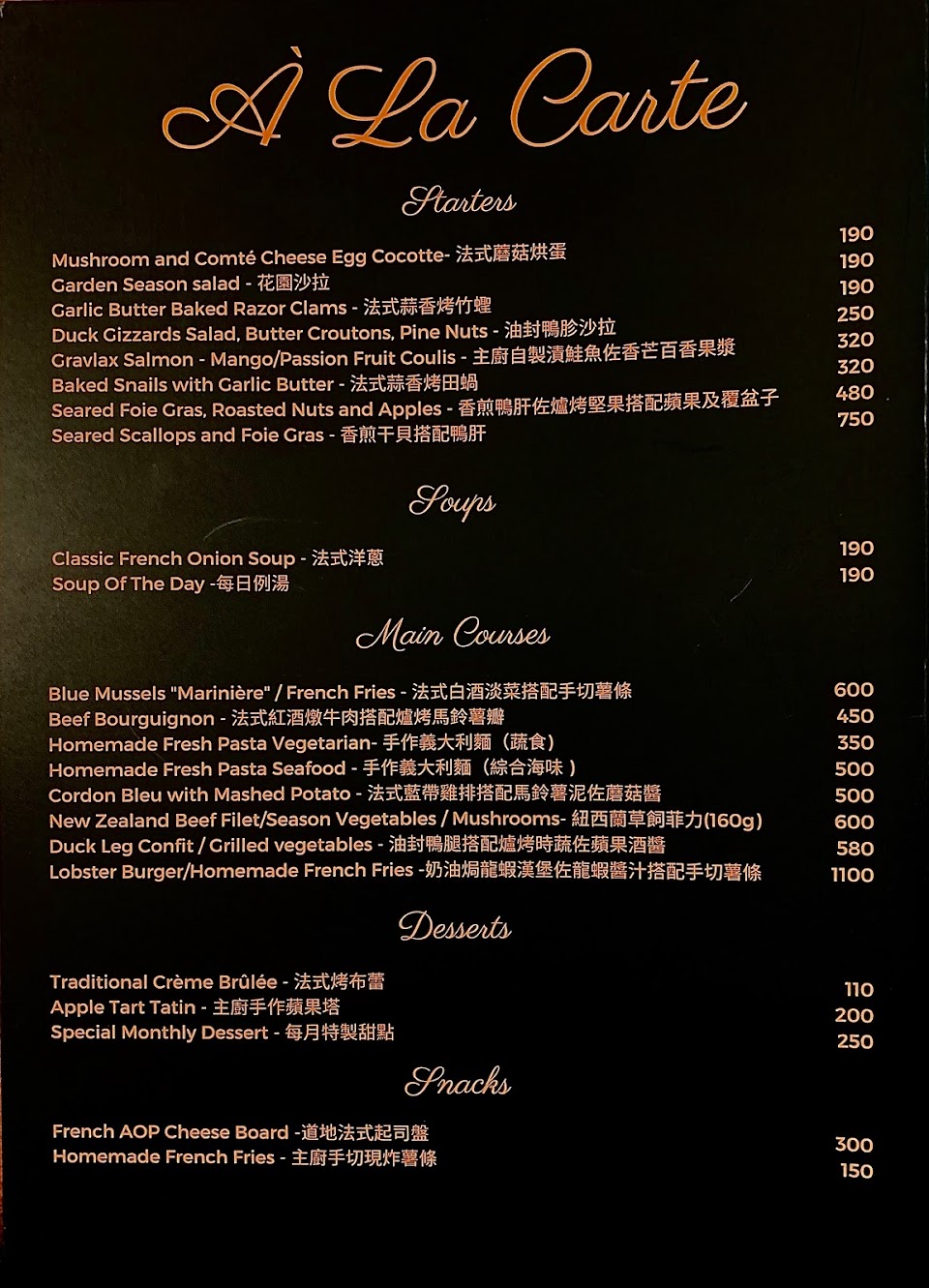 正宗的法國菜,味道好極了,讓人吃飽!即使在法國,您也找不到這個價格的品質!