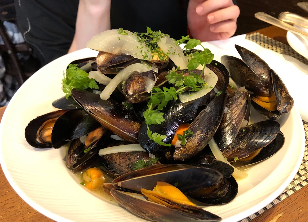 東西好吃 服務人員是外國人 但中文溝通沒問題 淡菜超大份 值得推薦