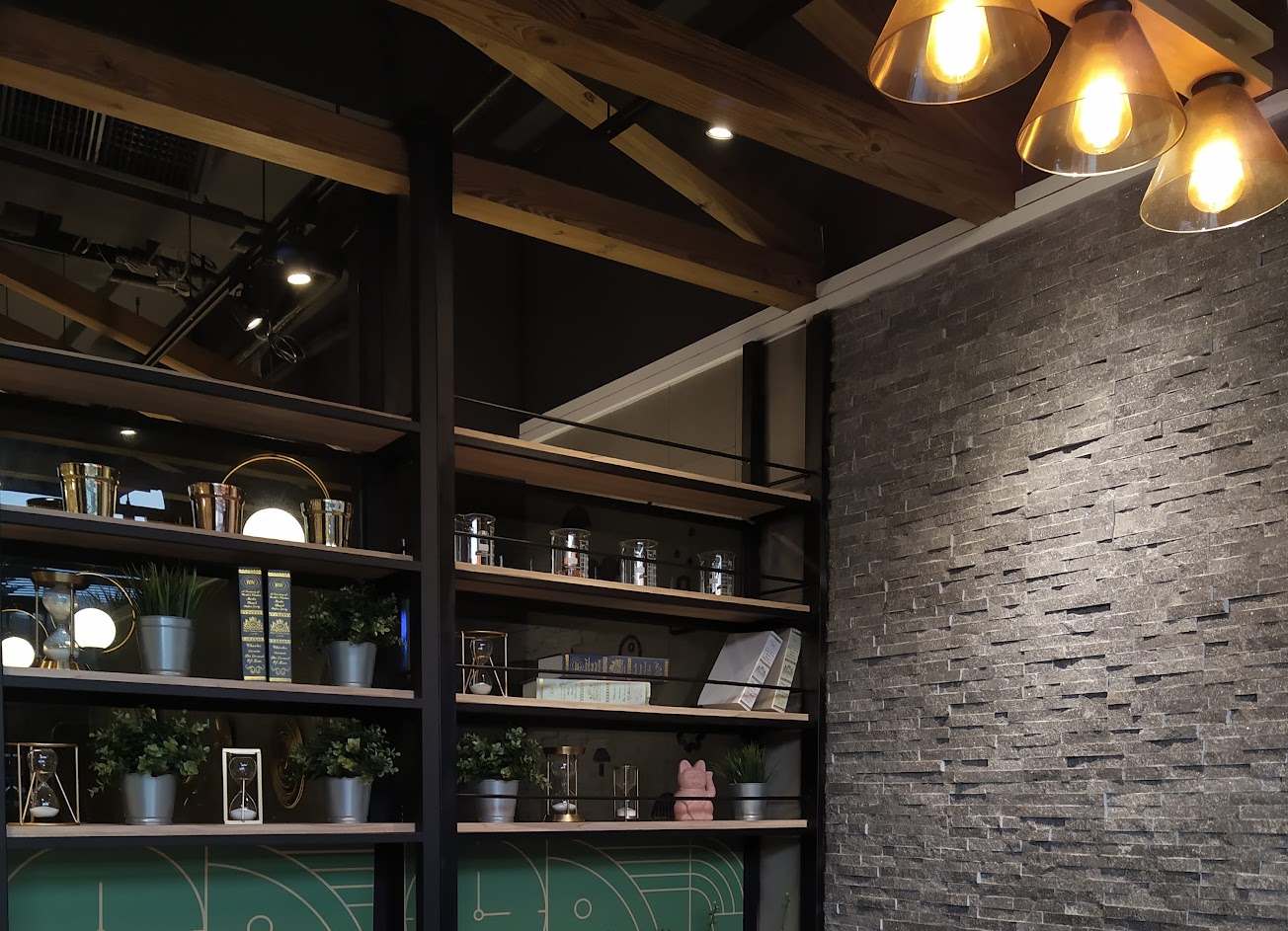 裝潢很酷相當引人注目,鍋物屬於石頭火鍋爆炒湯底,服務生會親自桌邊服務。飲料有豆漿和紅茶也很特別。價位偏中($300~400)。